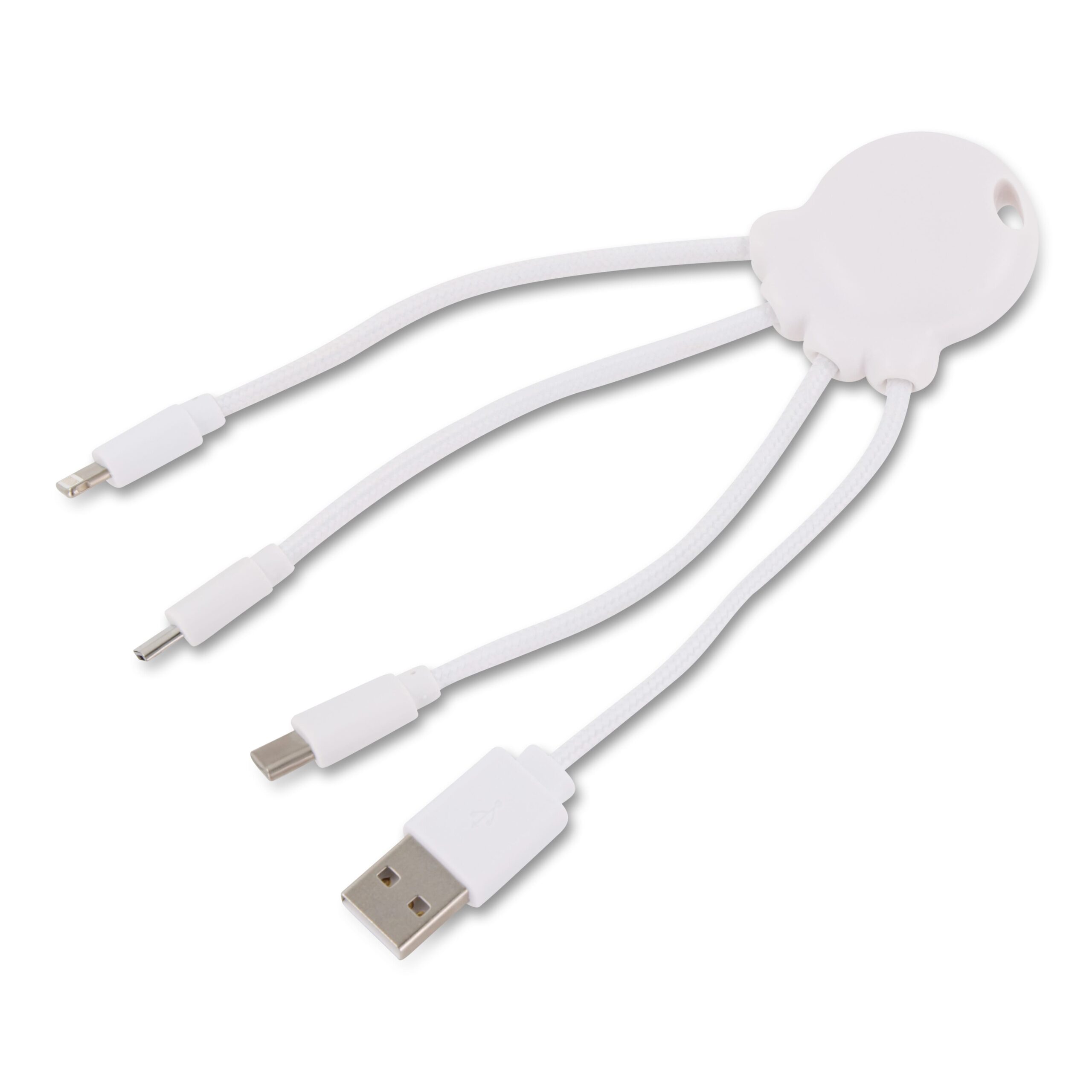 Das Eco Octopus Ladekabel ist aus RPET (Kabel) und recyceltem Kunststoff (Gehäuse) hergestellt. Mit einem USB-Eingangsstecker und drei verschiedenen Steckern können Sie Ihre Geräte umweltfreundlich aufladen. Ob am Schreibtisch, im Auto, in der Tasche oder im Urlaub, dieses Multiladekabel ist immer praktisch! Der Gesamtanteil an recyceltem Material beträgt 61 %, bezogen auf das Gewicht des Artikels. Das Kabel ist in einem nachhaltigen, FSC-zertifizierten Papierumschlag verpackt.