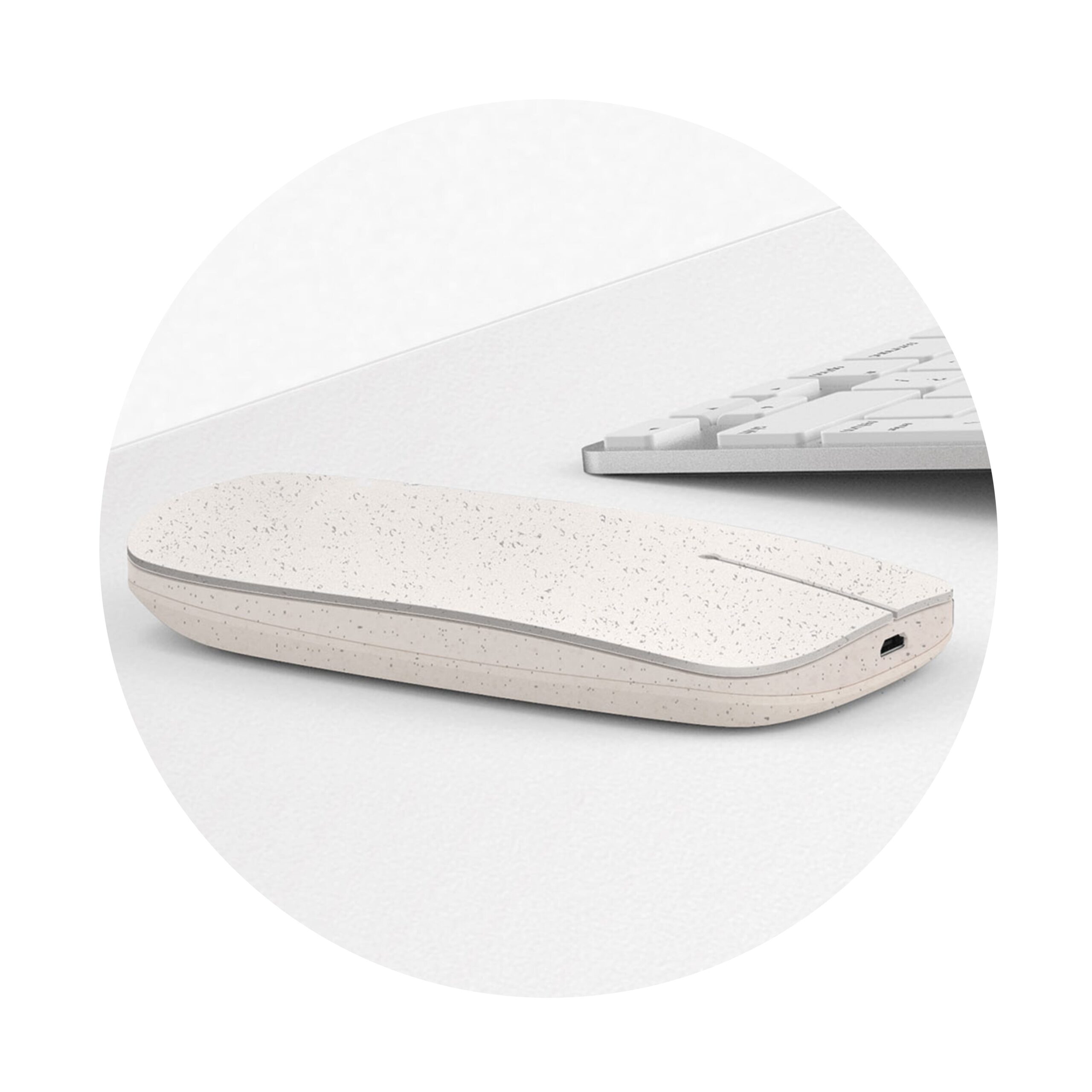 Die Pokket-Maus ist eine grüne Alternative zur Arbeit am Computer. Dieser Werbeklassiker mit kabelloser Verbindung ist in biologisch abbaubarem Kunststoff und Weizenmaterial erhältlich.