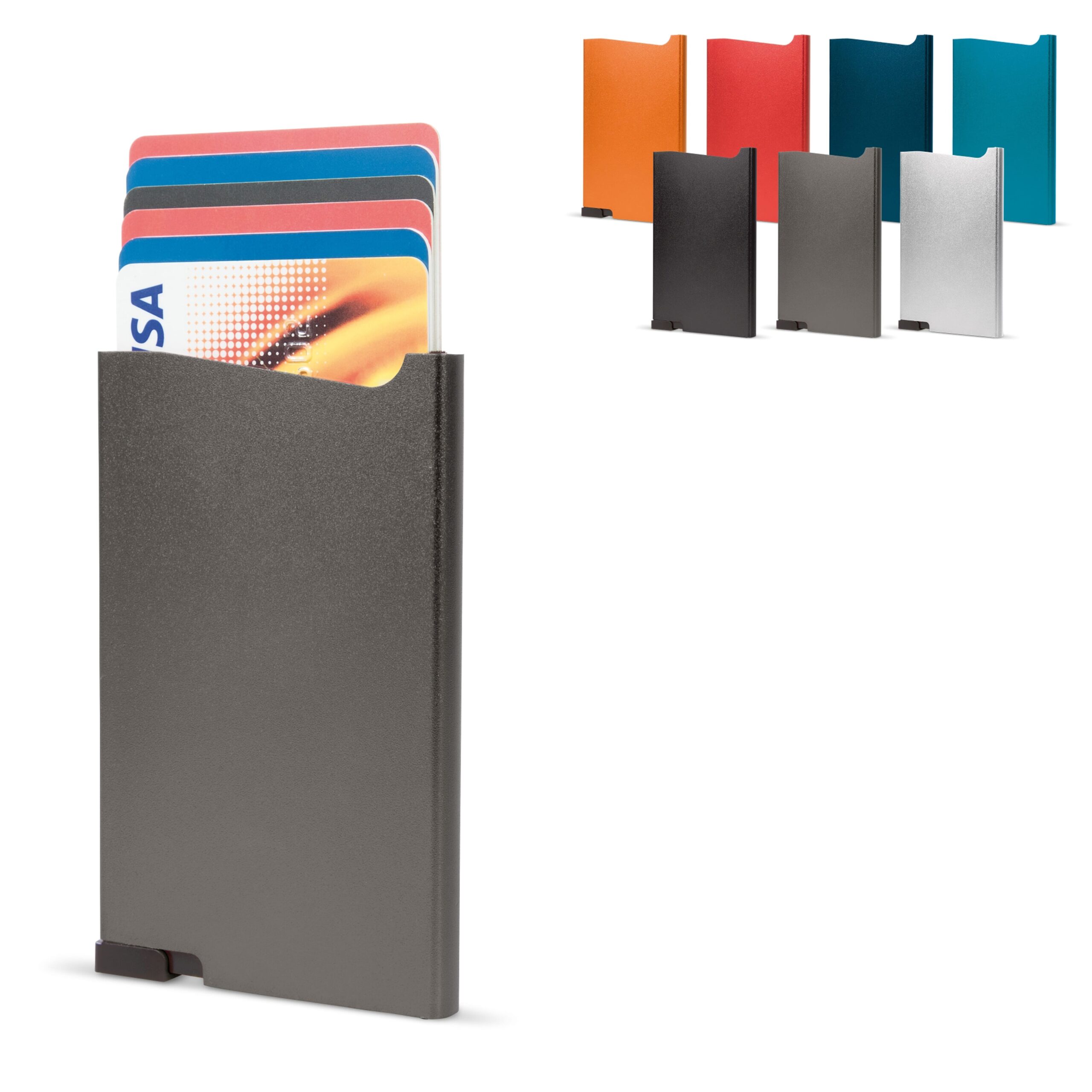 Hochwertiger Aluminium Kartenhalter zum Schutz Ihrer Karten vor RFID-Skimming. Einfach den Knopf drücken und bis zu 6 Karten (4 mit Prägung) abrufen.