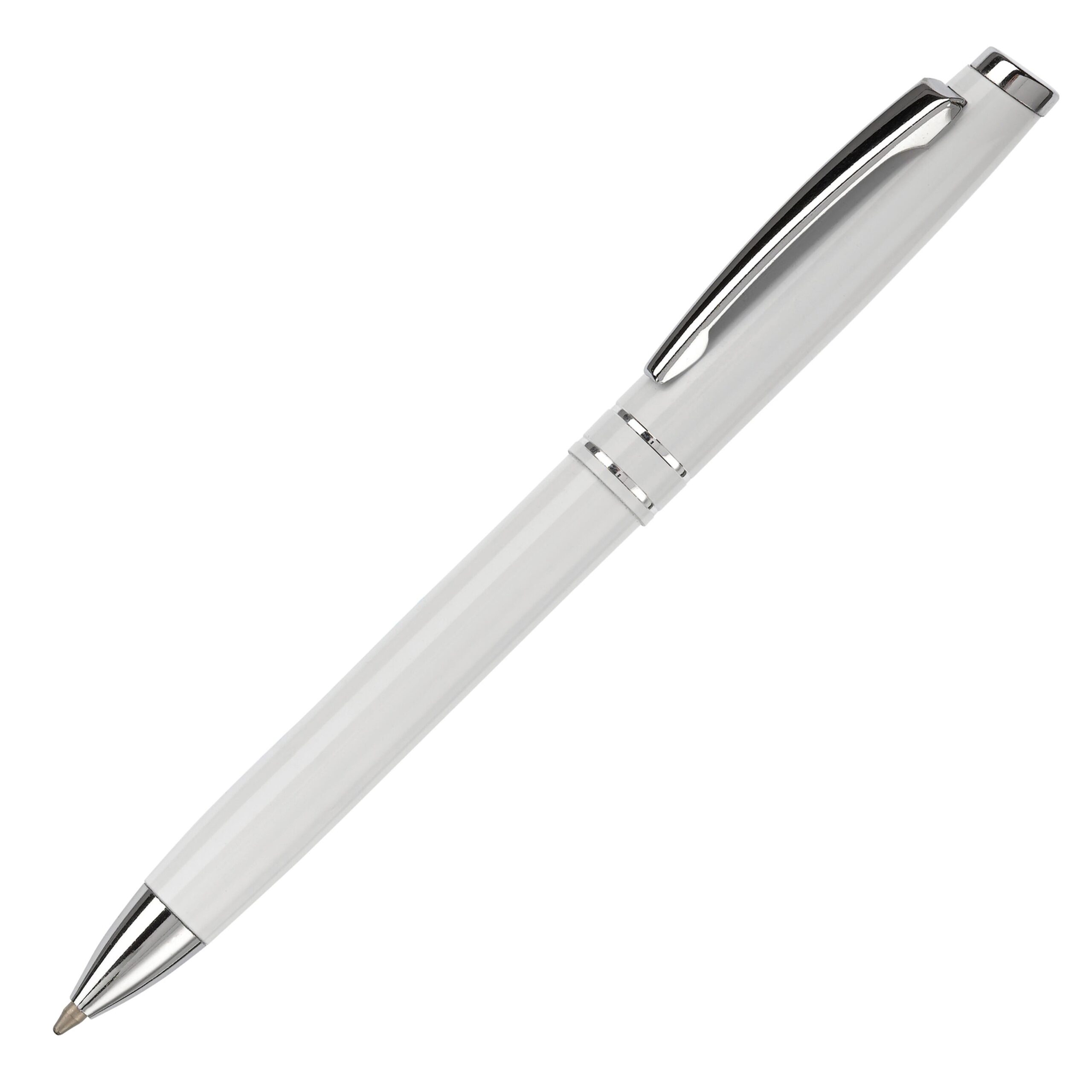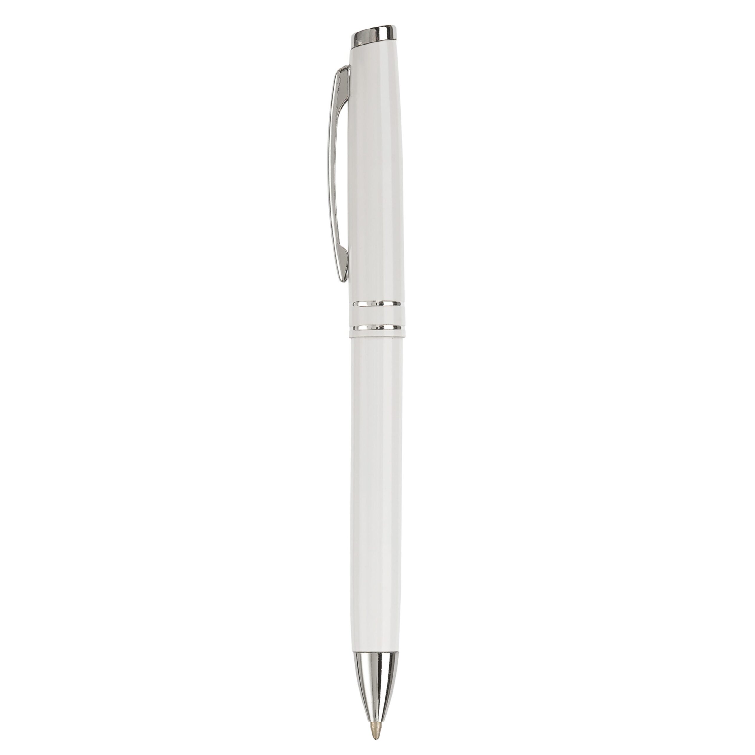 Blauschreibender Aluminiumkugelschreiber mit zwei Ringen.