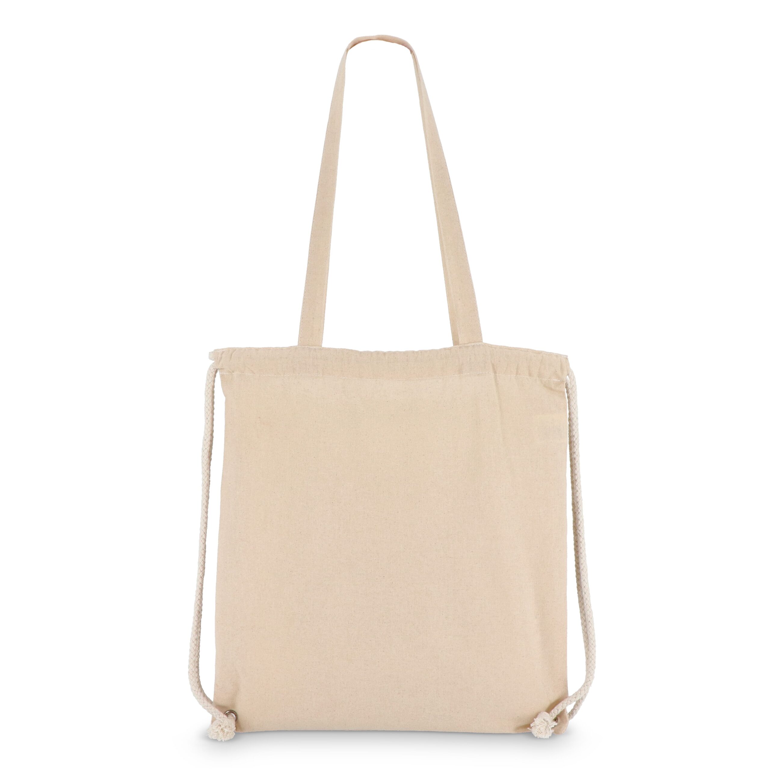 Klassische Tragetasche aus 140 g/m² Baumwolle mit langen Griffen und zusätzlichem Kordelzugverschluss für zusätzliche Vielseitigkeit. Kann wie eine Standardtasche getragen oder wie ein Kordelzugbeutel gesichert werden. Oeko-Tex®-zertifiziert. Ideal für den täglichen Gebrauch, als Werbegeschenk oder für Aktionen im Einzelhandel.
