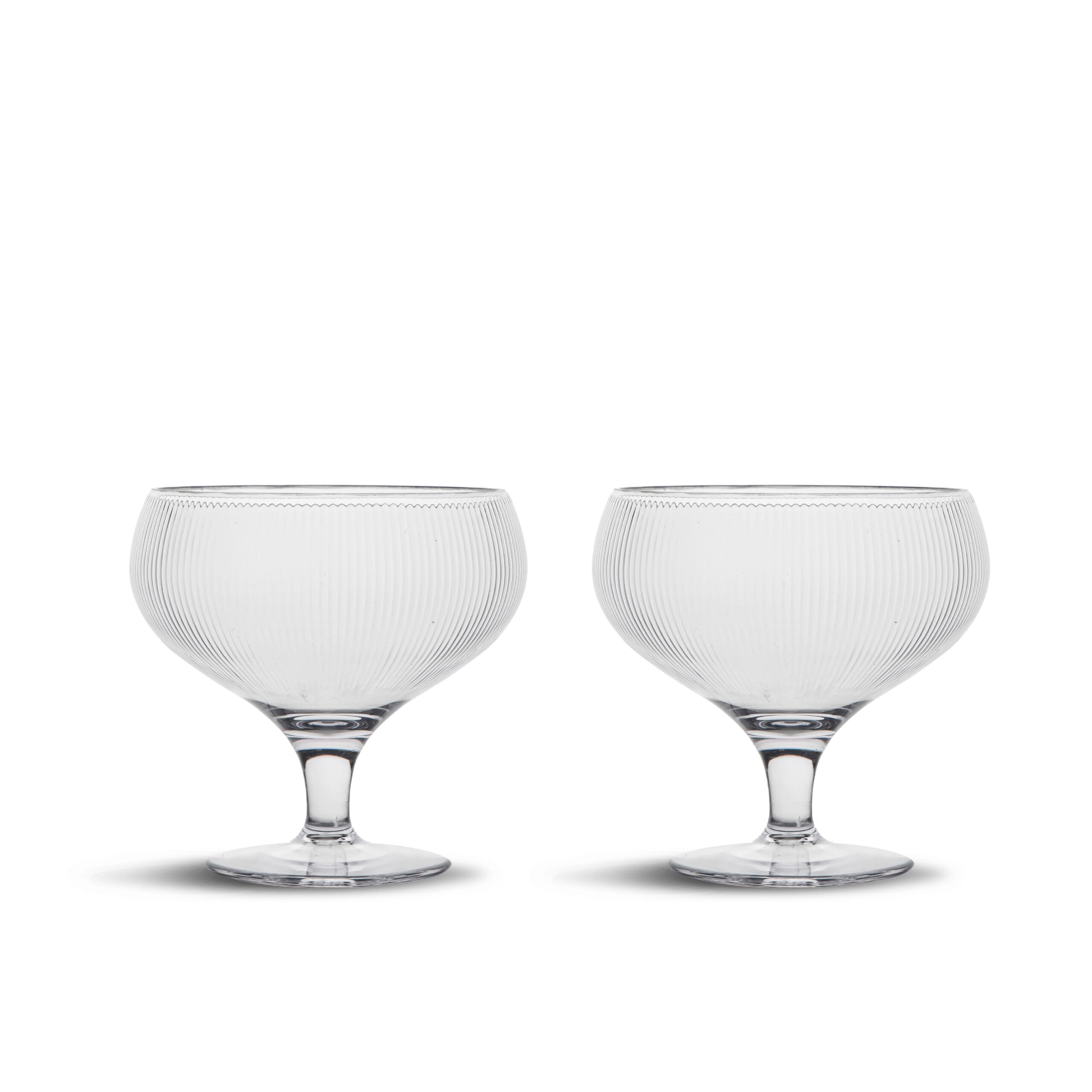 Das Billi Coupé-Glas hat ein einzigartiges, charakteristisches Design, das Sagaform auf eine offensichtliche Weise repräsentiert. Mit der ausgeprägten, abgerundeten Schale, die mit Streifen verziert ist, und dem niedrigen Fuß ist dieses Coupeglas sowohl schön als auch funktionell. Die praktische, stapelbare und gut durchdachte Form macht das Glas perfekt für viele Gelegenheiten. Hergestellt aus recyceltem PET (rPET). Jede Packung enthält zwei Coupe-Gläser von Sagaform, das perfekte Geschenk für jemanden, der schon alles hat. Entworfen in Schweden von Studio Sagaform. Die Billi-Serie ist für Temperaturen bis zu 50°C geeignet. Nur Handwäsche. Größe ø10×9,5 cm 30 cl.