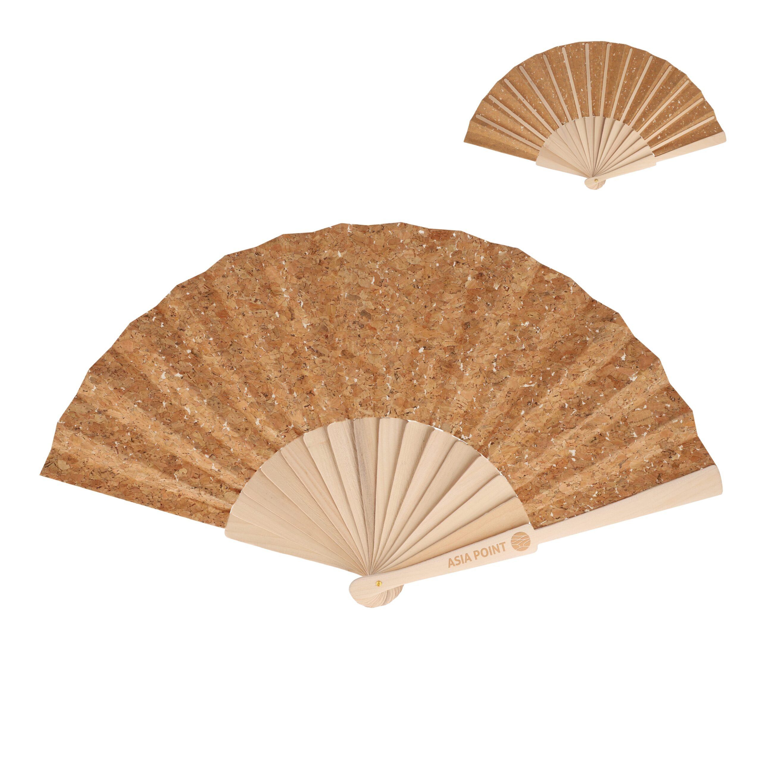 Der Fächer aus Holz mit Korkgewebe_beschichtung ist der ideale Begleiter für heiße Tage. Ideal für Veranstaltungen im Freien und heiße Sommertage.