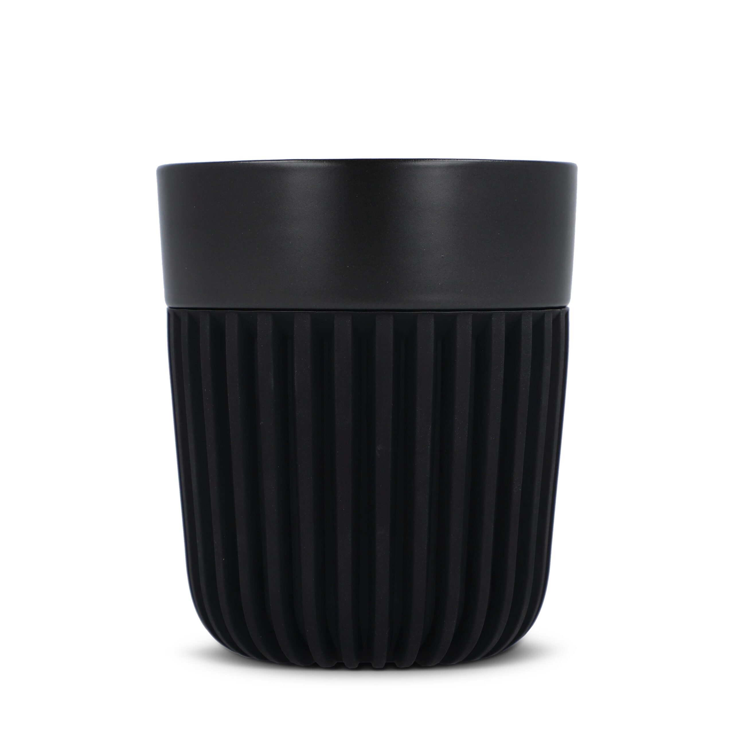 Der InSideOut All Black Premium-Becher Fjord aus Bone China hat eine exklusive gerippte Silikonhülle, die isoliert und schützt. Von Andy Cartwright entworfen, verkörpert er Eleganz und Luxus. Passend für die meisten Kaffeemaschinen, spülmaschinenfest und perfekt für den täglichen Gebrauch.