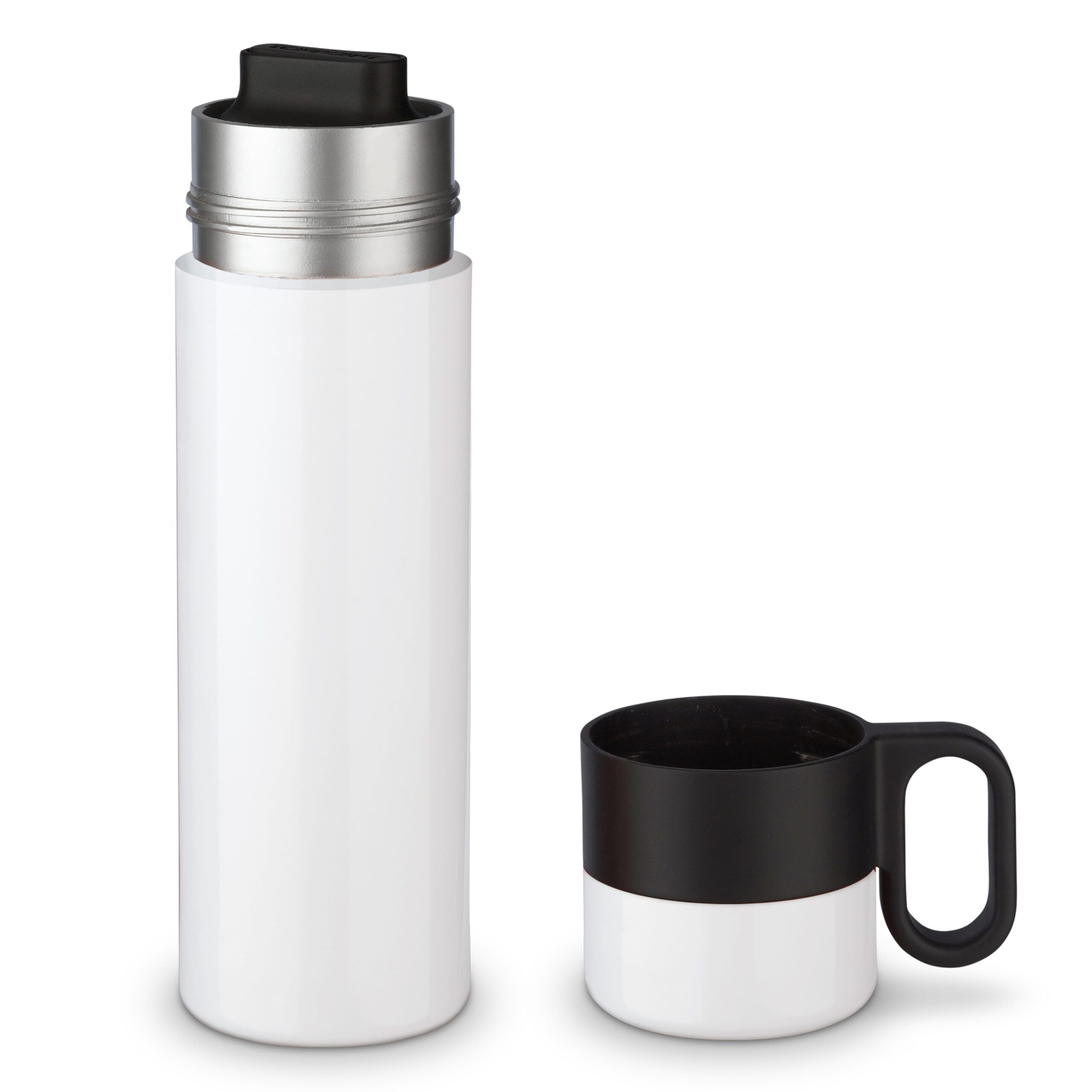 Doppelwandige vakuumisolierte Flasche aus der ‘Flow’-Serie. Der Becher ist 100% auslaufsicher und leicht zu tragen. Der Deckel dient als Becher. Die Innen- und Außenwand sind aus hochwertigem Edelstahl gefertigt. Die Getränke bleiben bis zu 12 Stunden warm und/oder bis zu 24 Stunden kalt. Entworfen von Toppoint.