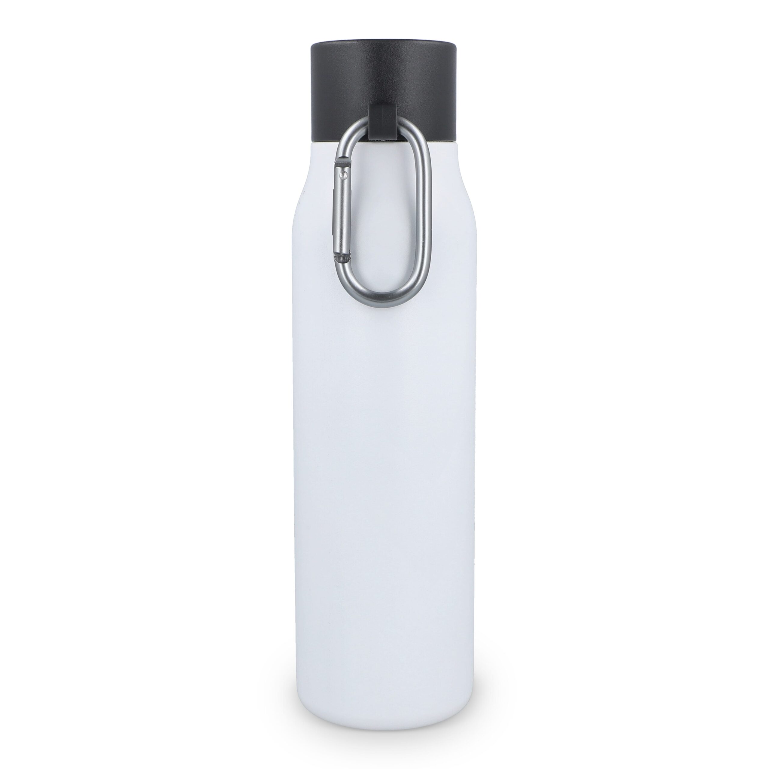 Solide 600-ml-Isolierflasche mit matter Oberfläche. Der Verschluss verfügt über einen Karabinerhaken zum Befestigen an Ihrer Tasche und zum einfachen Transportieren. Jede Flasche ist in einer Geschenkbox verpackt.