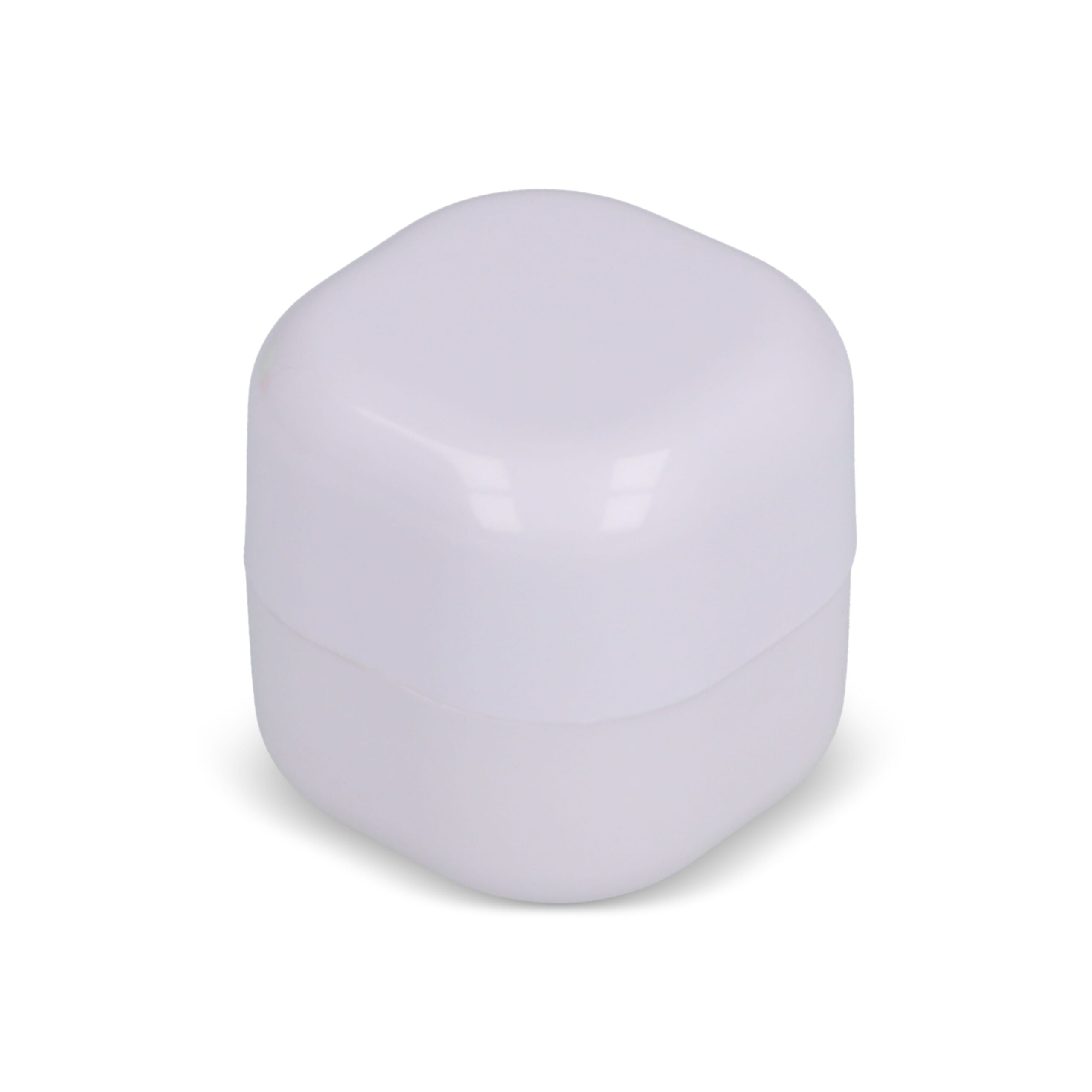Lippenbalsam in einem würfelförmigen Behälter aus recyceltem ABS. Die abgerundete Kugelform im Inneren sorgt für ein sanftes Auftragen der feuchtigkeitsspendenden Pflege.