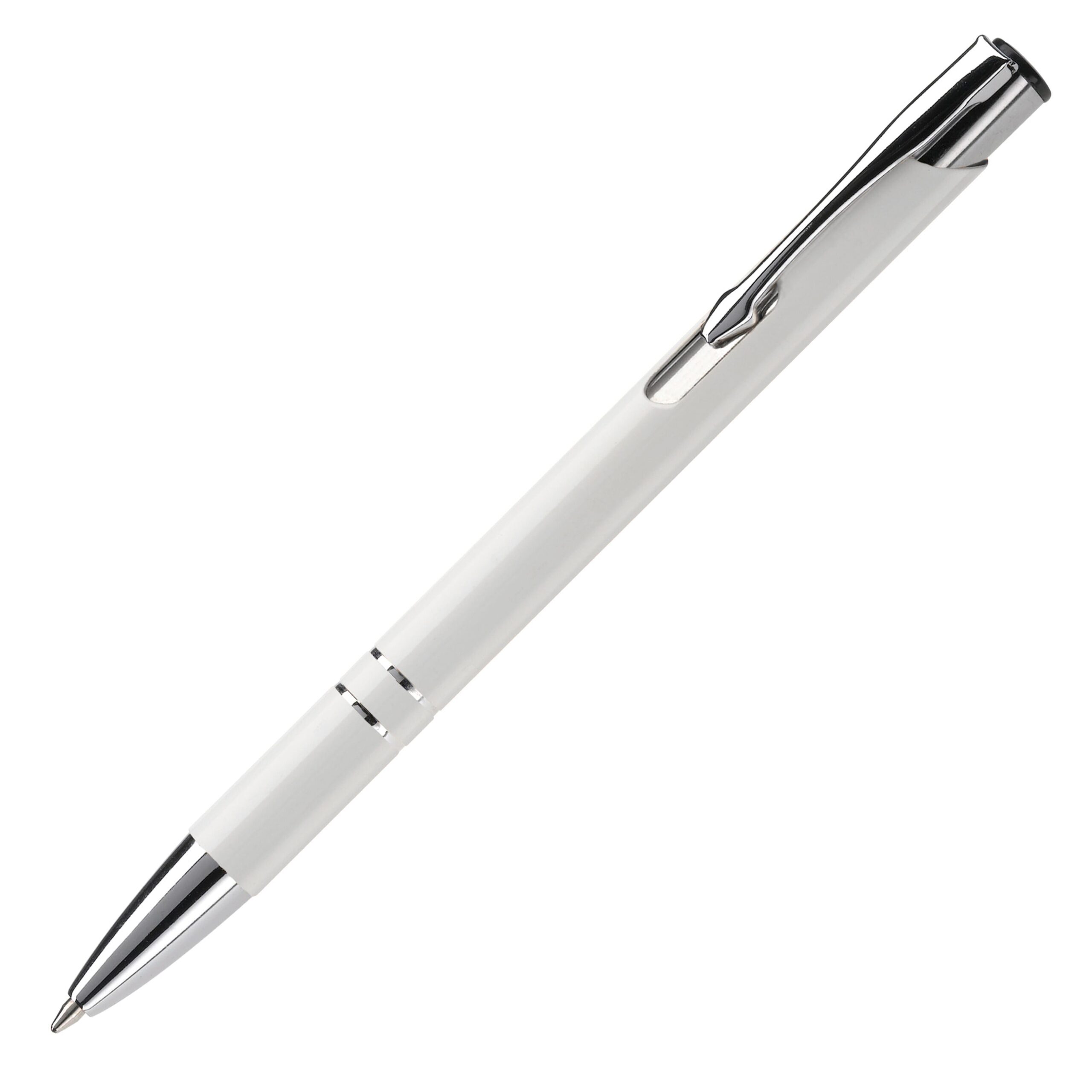 Eleganter Aluminium Kugelschreiber mit 2 Ringen am Schaft. Blauschreibende Kunststoffmine.