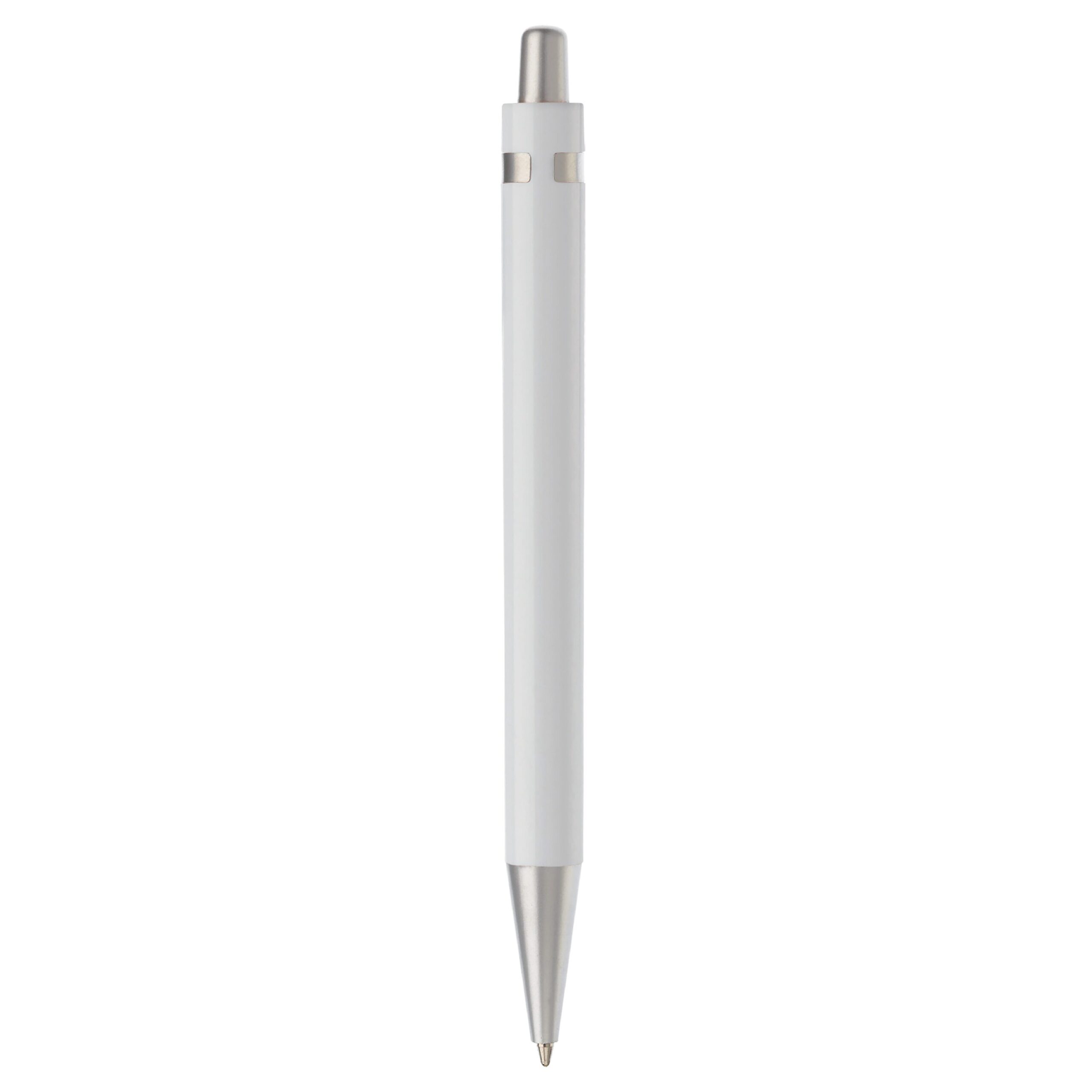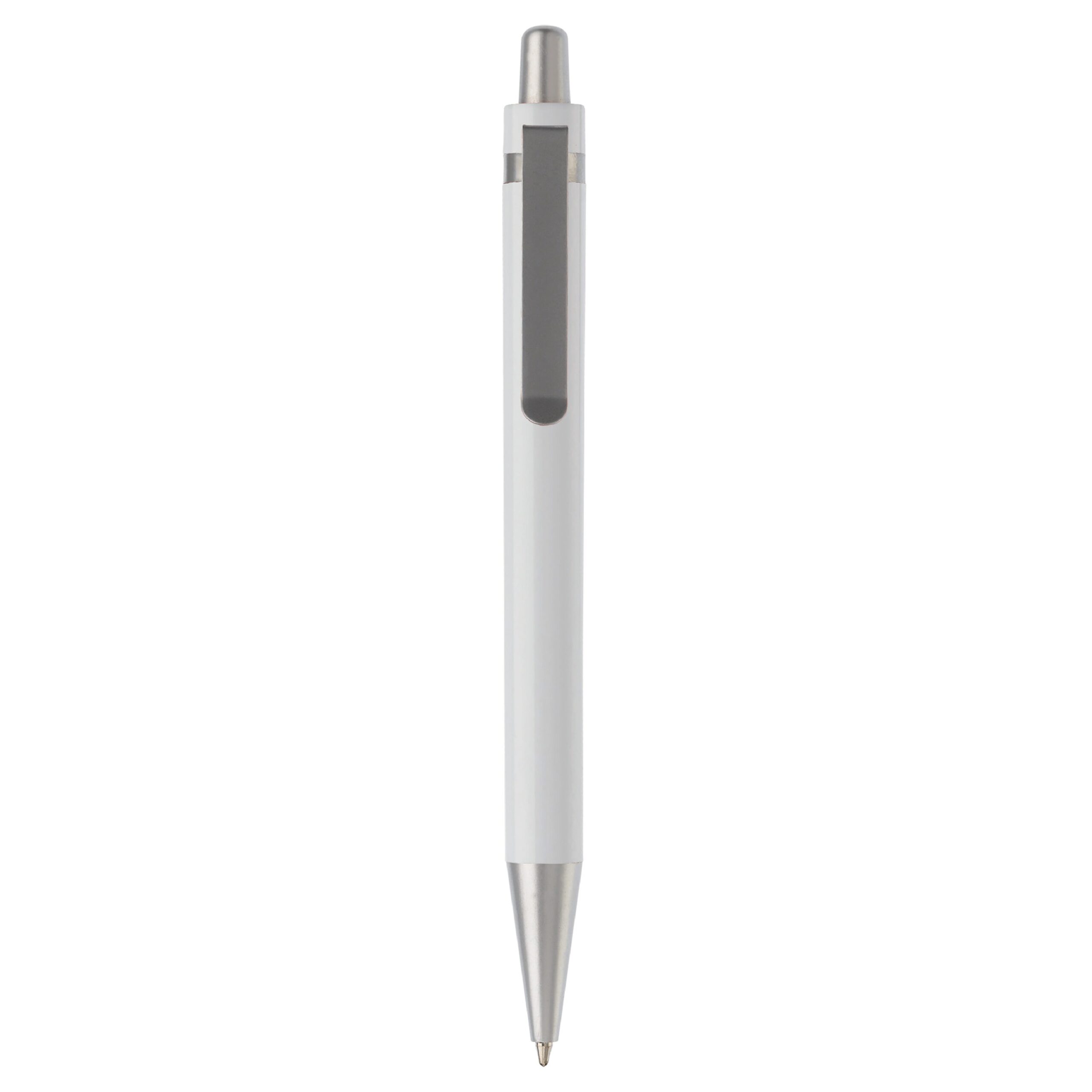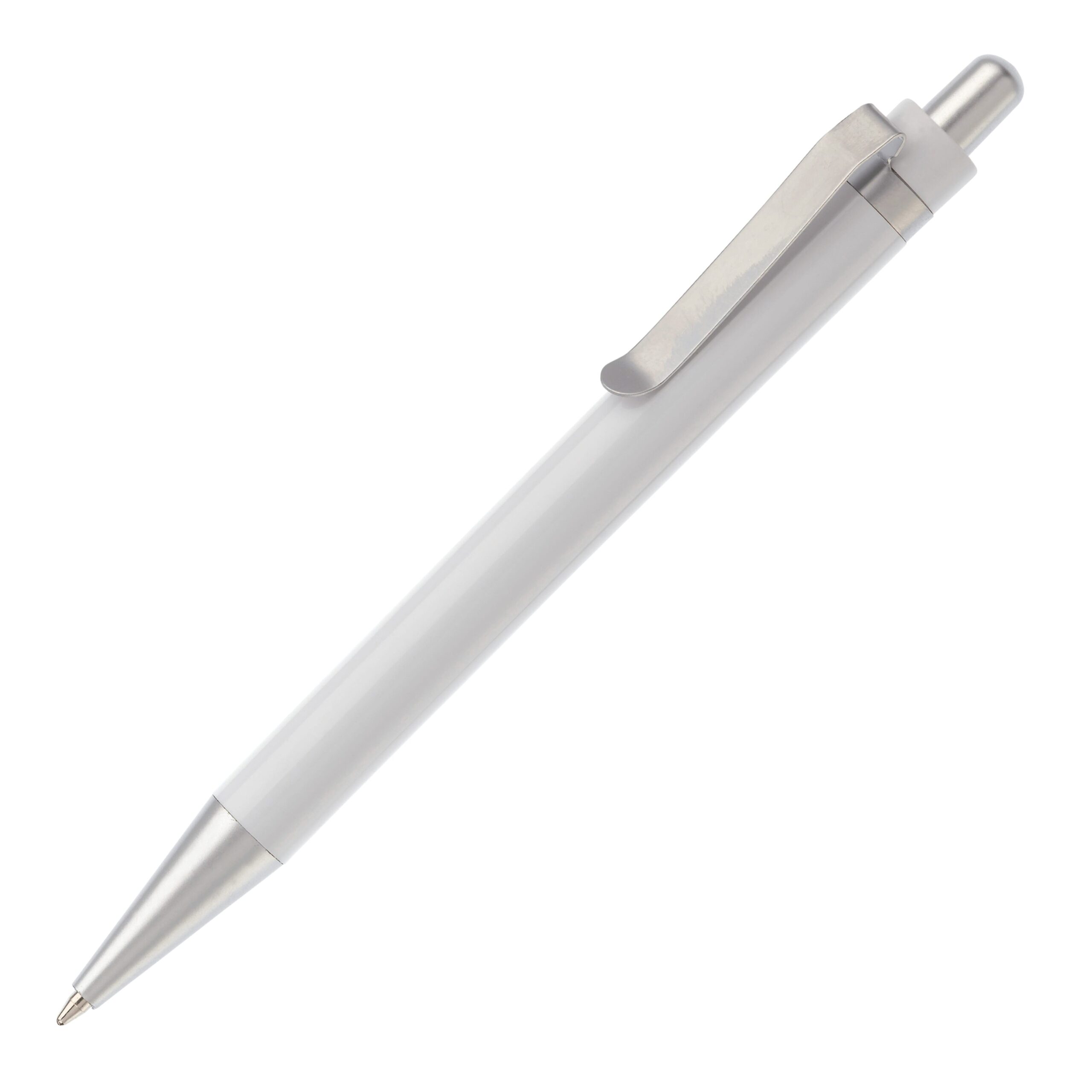 Transparenter Kunststoffkugelschreiber mit Metallclip und blauschreibender mit X20-Mine.