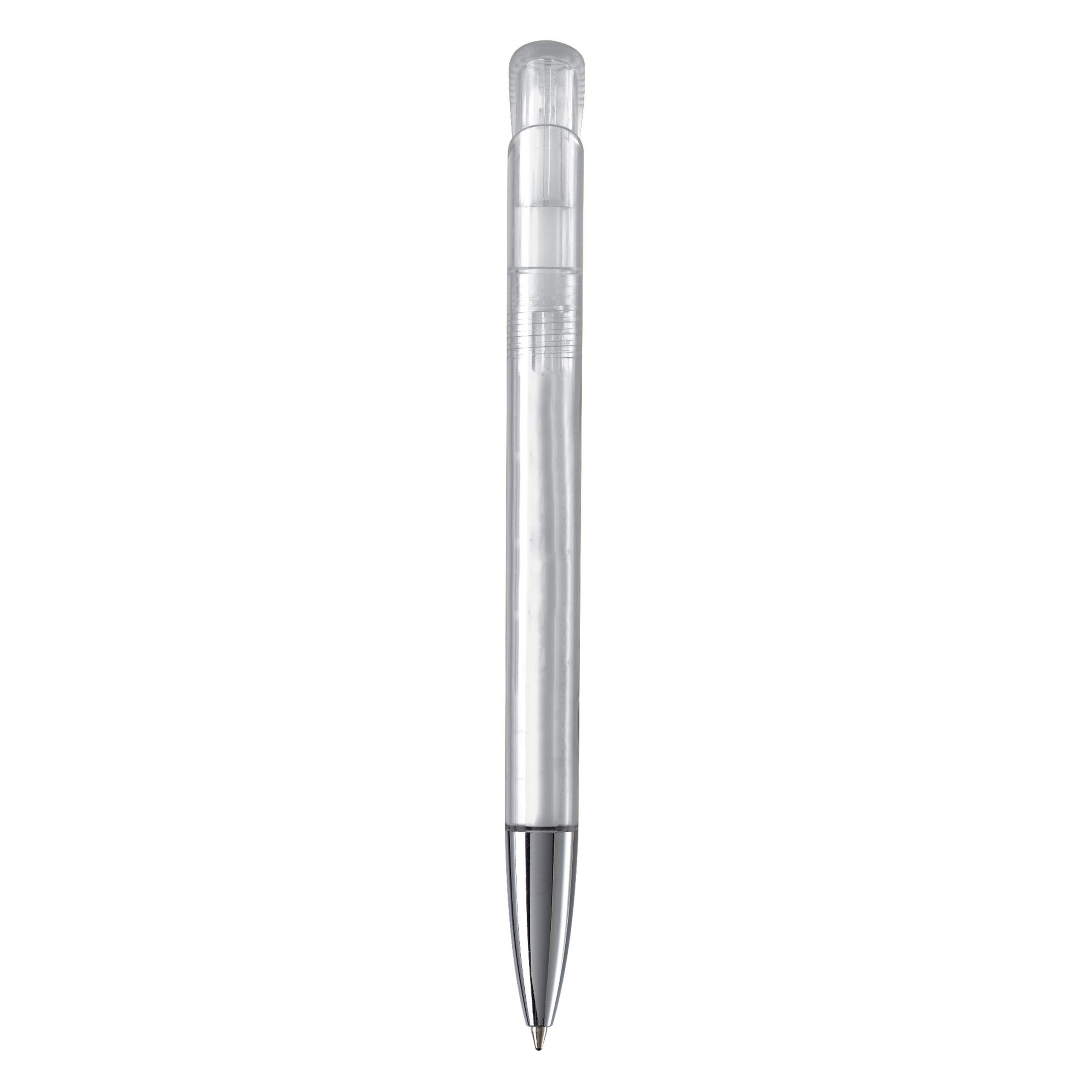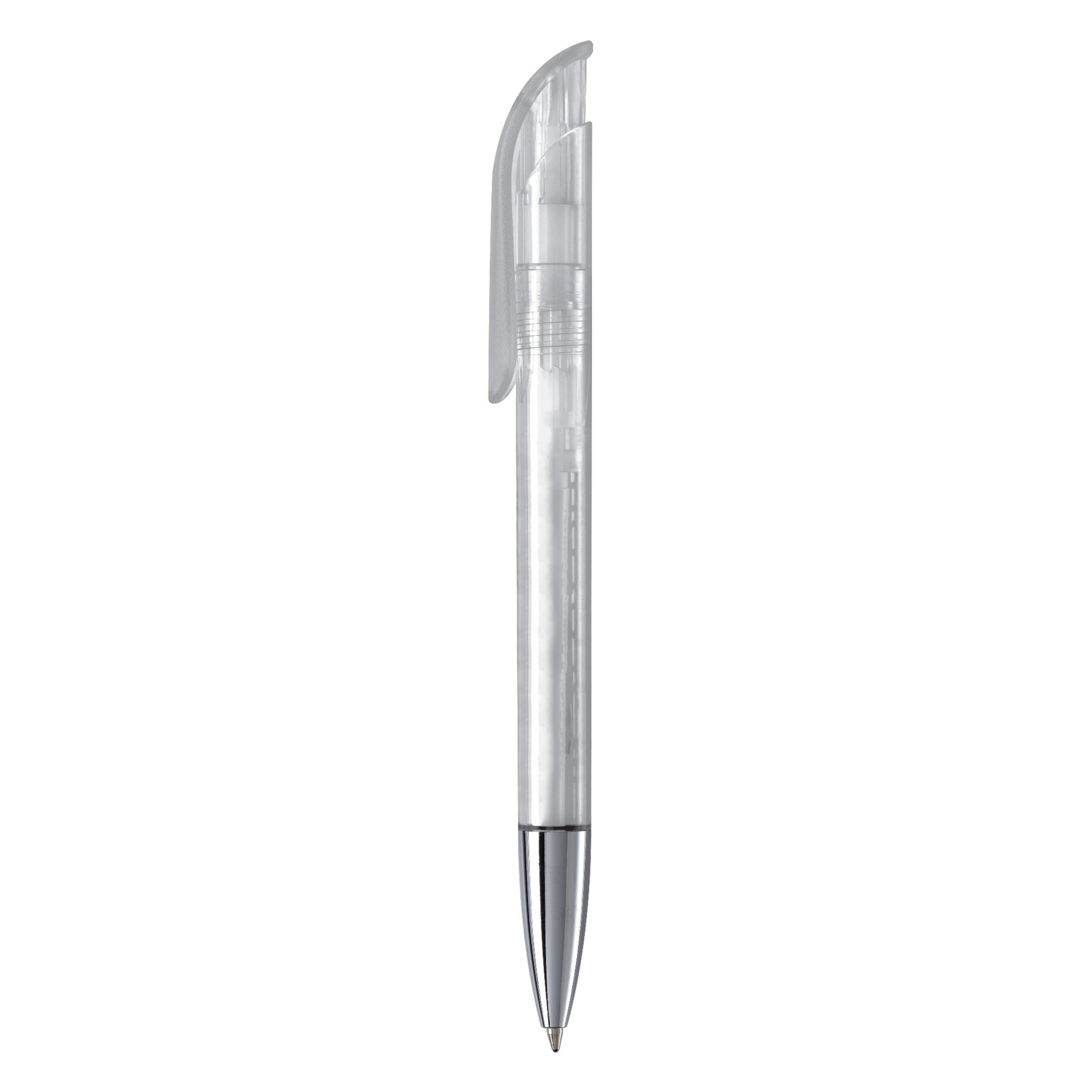 Toppoint Design-Kugelschreiber, Made in Germany. Kugelschreiber mit transparenten Gehäuse inkl. Metallspitze. Jumbo-Mine mit einer Schreibleistung von 4,5km. Minenfarbe: blau.