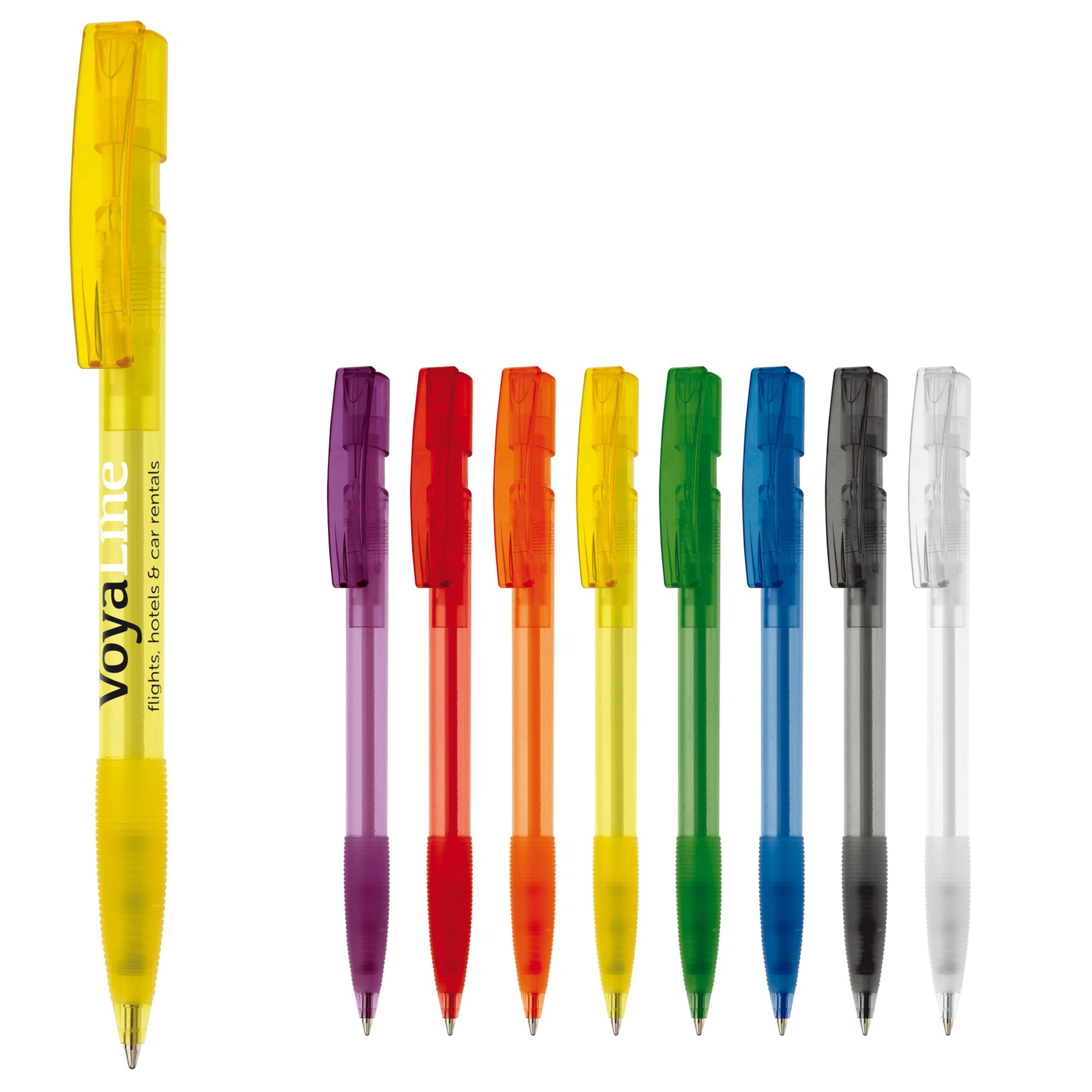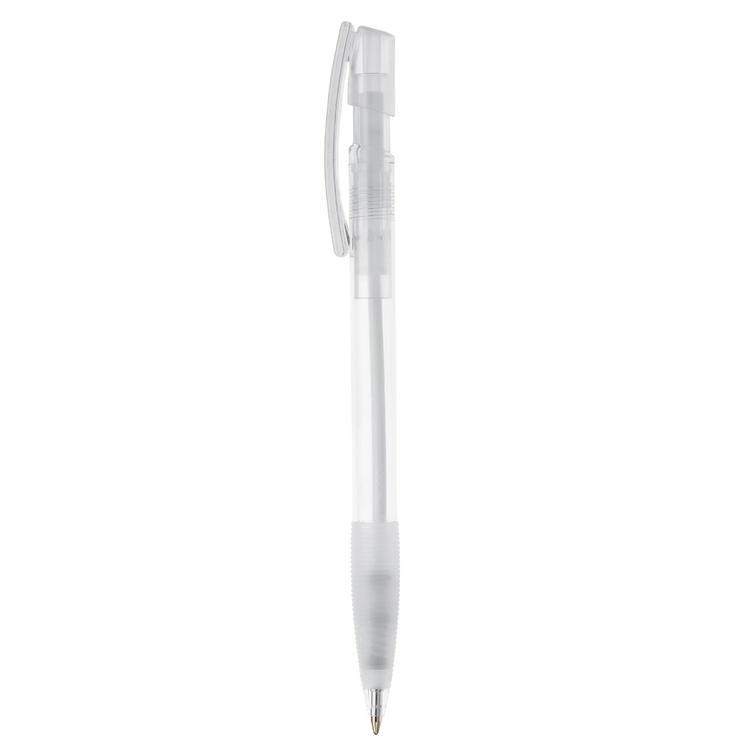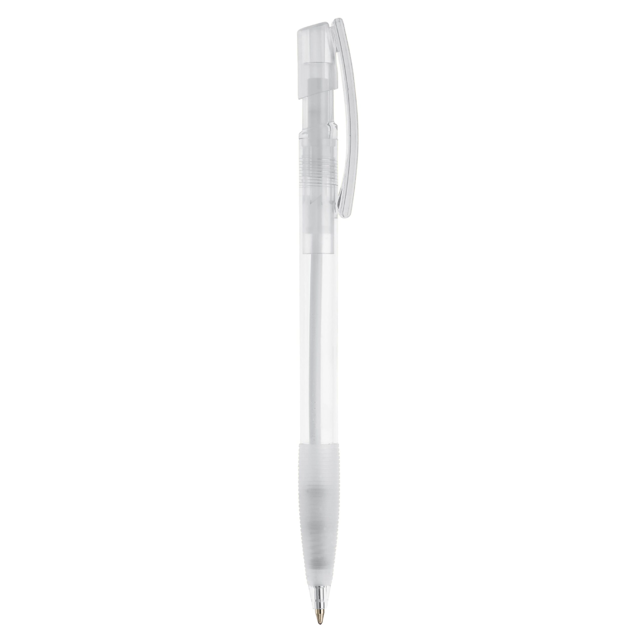 Kugelschreiber mit transparentem Schaft, Manschette und Bogenclip designed by Toppoint. Made in Germany. Blauschreibende X20-Mine. Schreibleistung 2,5km.