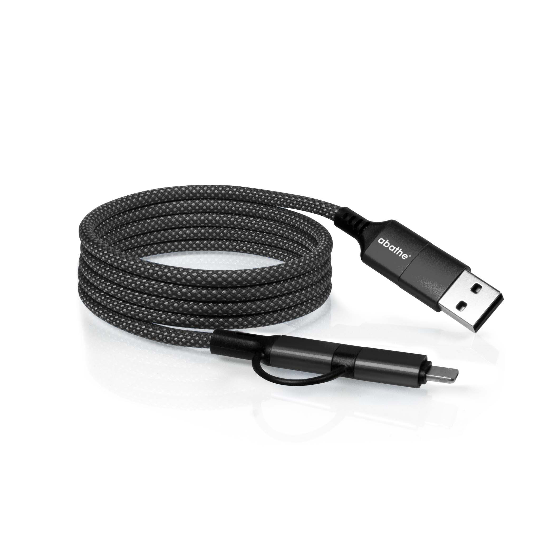 Magnetisches Multi-Schnellladekabel (1,00 m) mit USB-A, Lightning- und USB-C-Anschluss. Kompatibel mit allen neueren Geräten (ohne MFI-Lizenz).