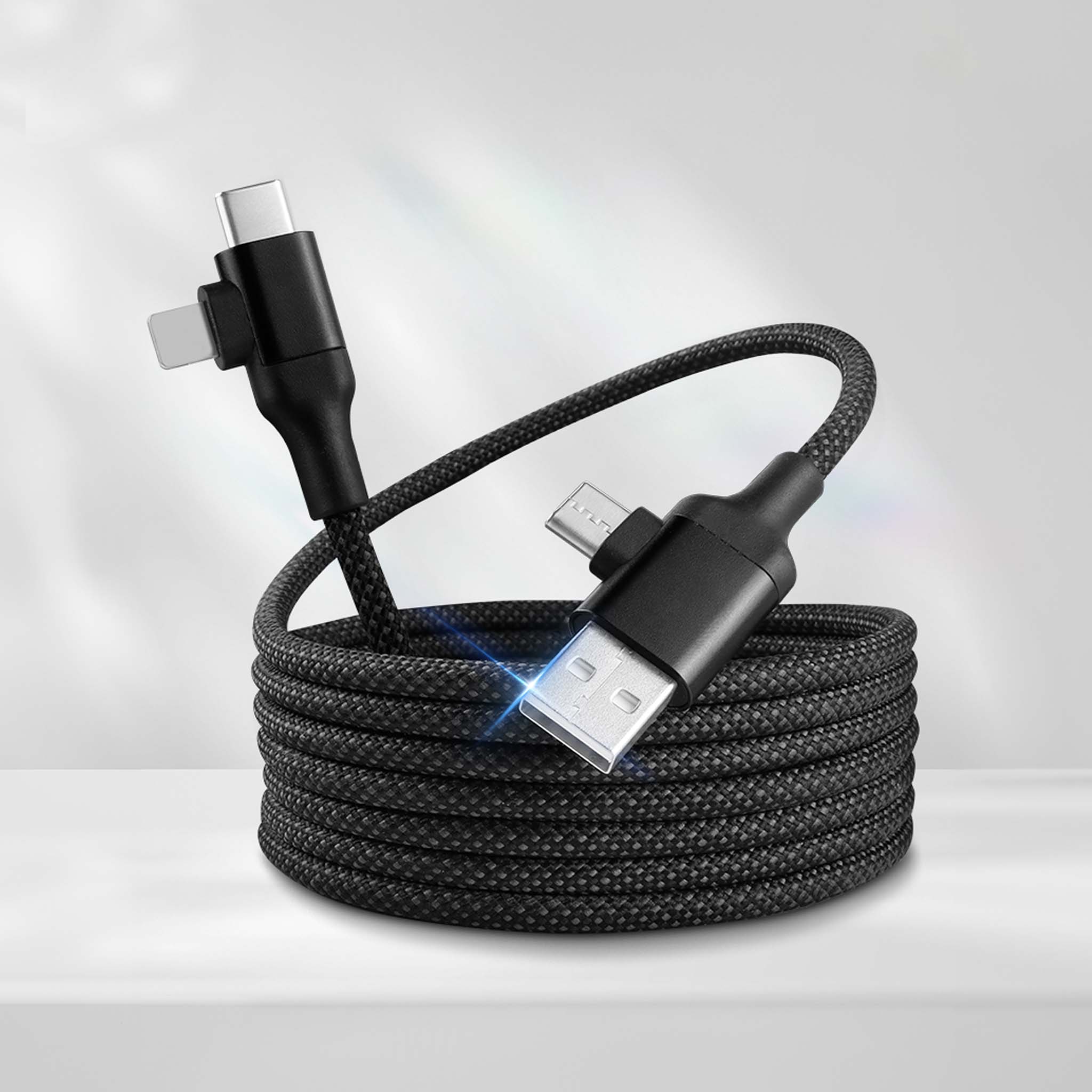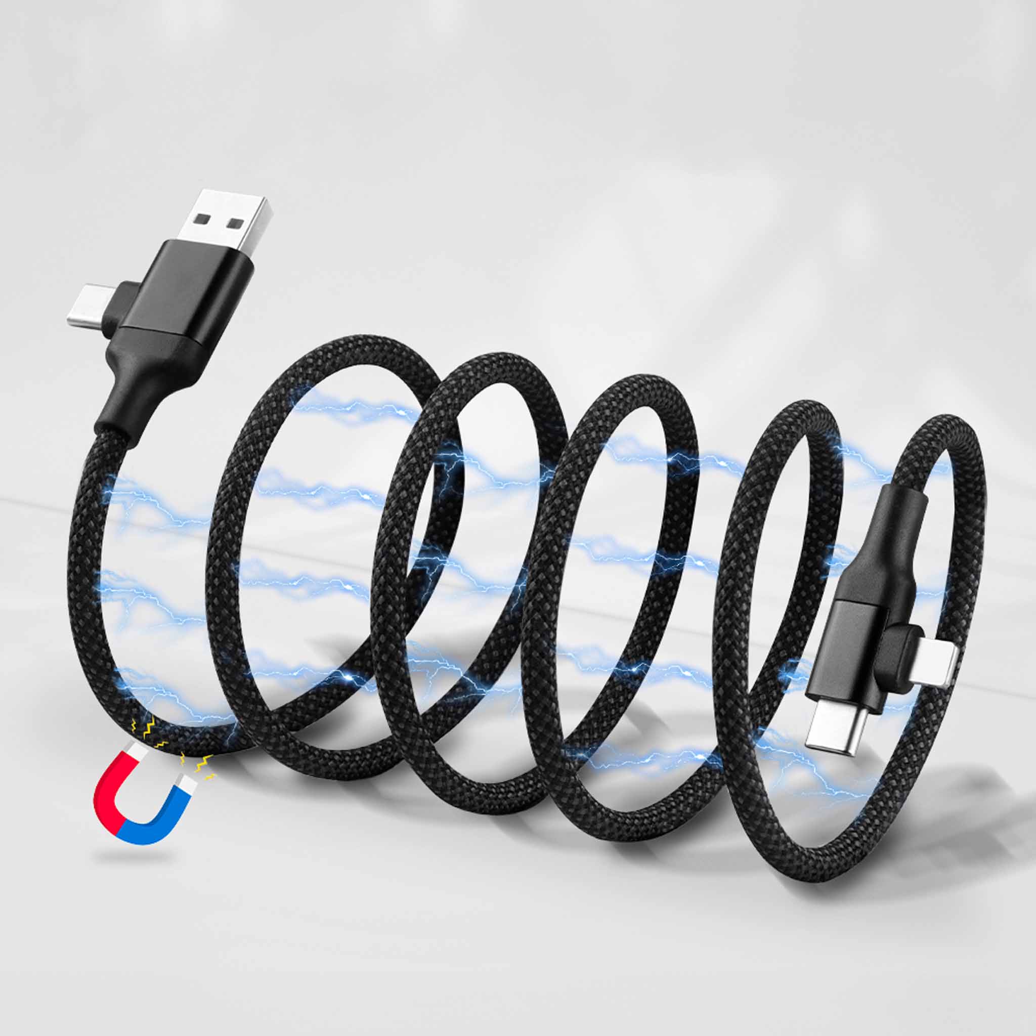 Magnetisches Multi-Schnellladekabel(1,00 m) mit USB-A, Lightning- und USB-C-Anschluss. Kompatibel mit allen neueren Geräten (ohne MFI-Lizenz).