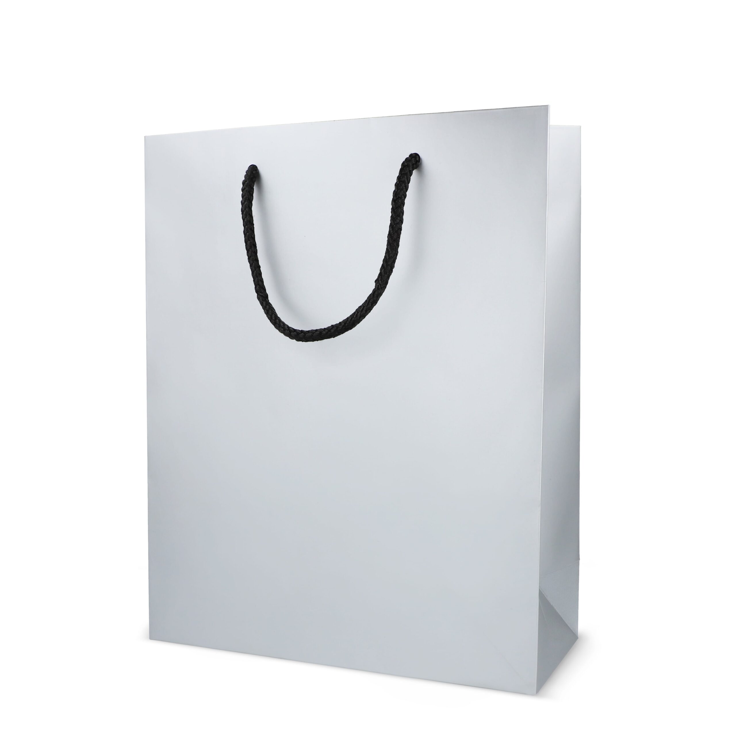 Elegante Geschenktasche Papier mit 5 mm dicken Kordeln aus recyceltem Polyester. Sie ist für ein Gewicht von bis zu 5 kg ausgelegt und hat ein luxuriöses Aussehen mit schwarzen Griffen und einer schwarzen Innenseite. Perfekt zum Überreichen von Geschenken.