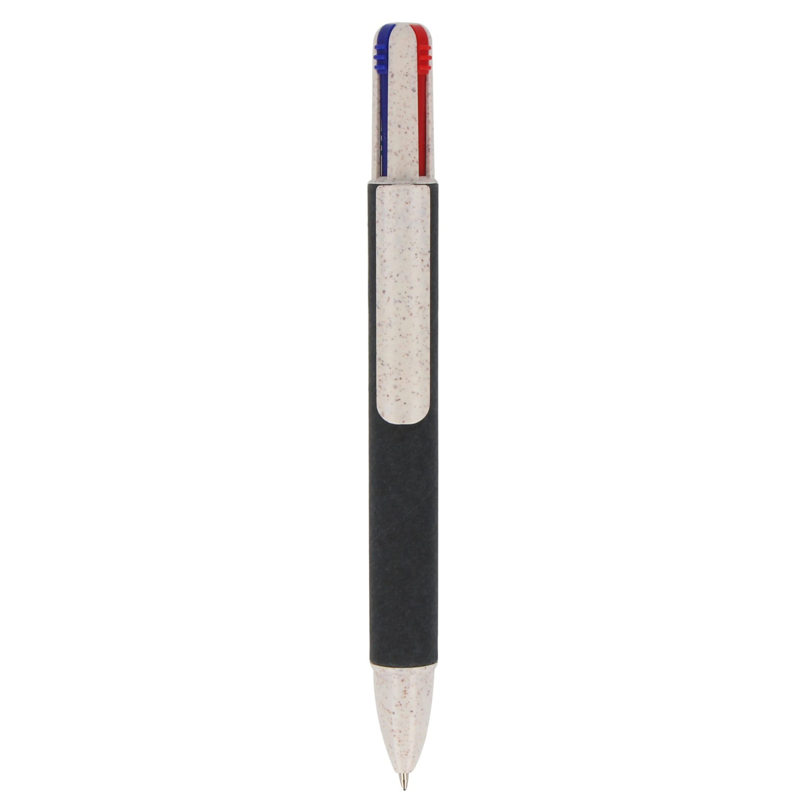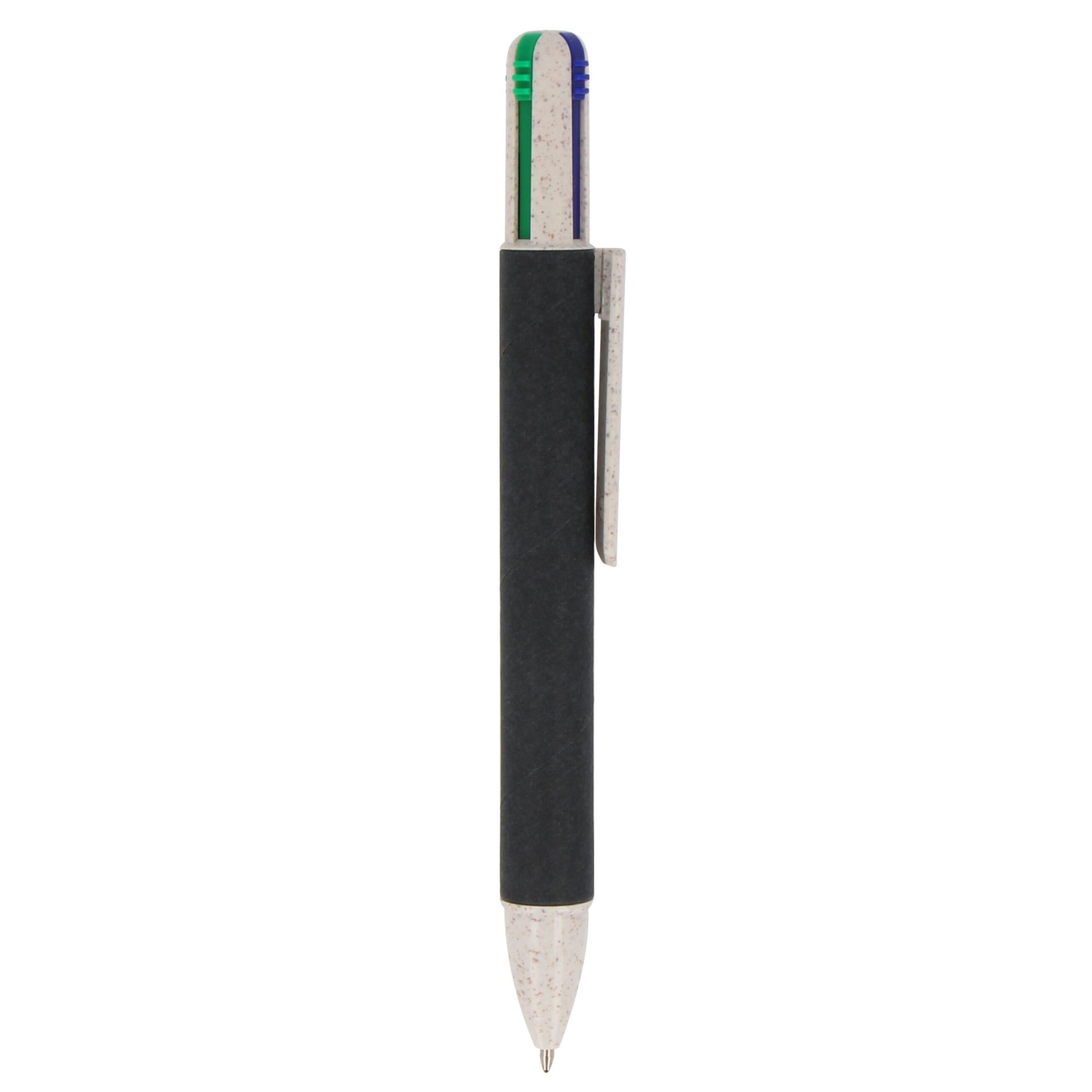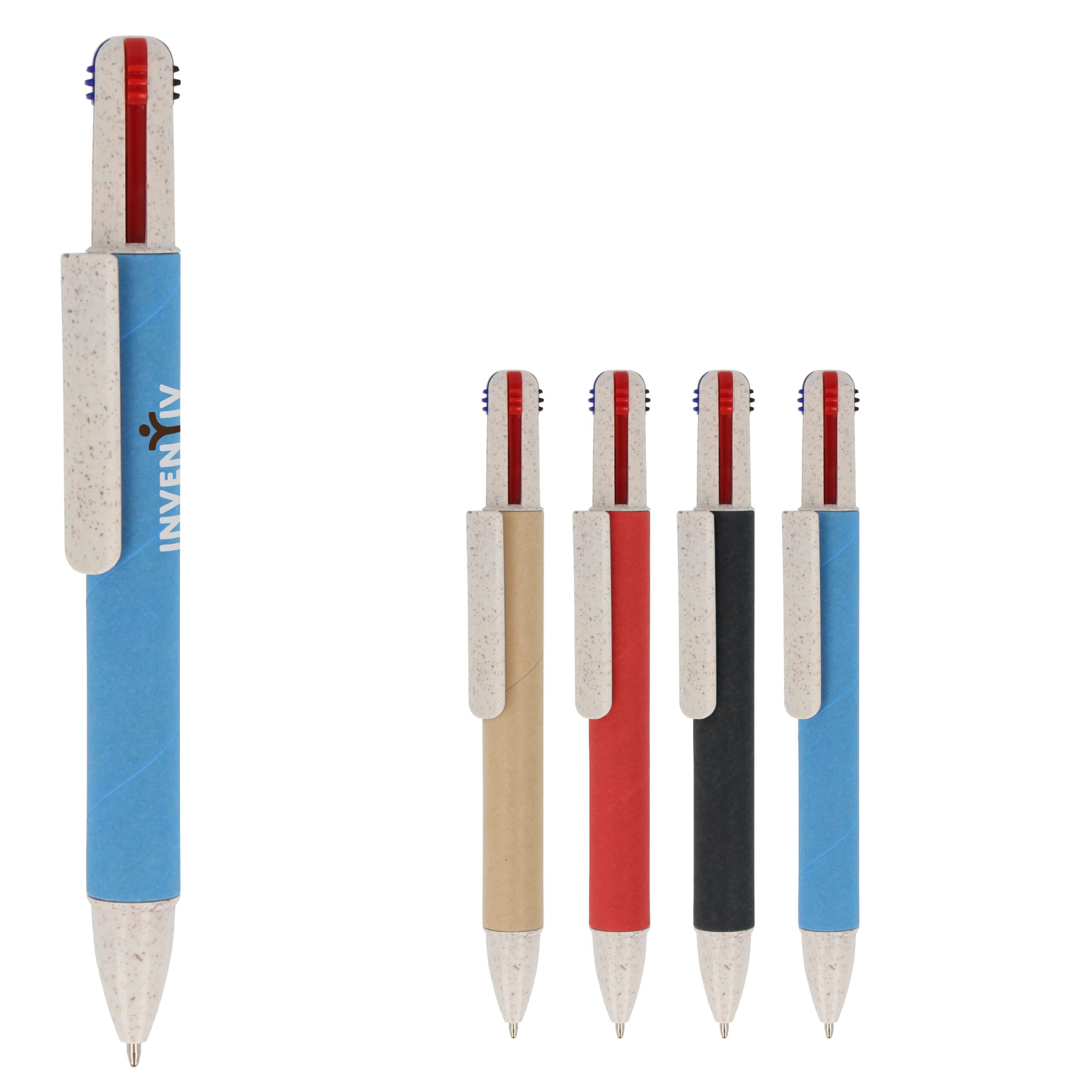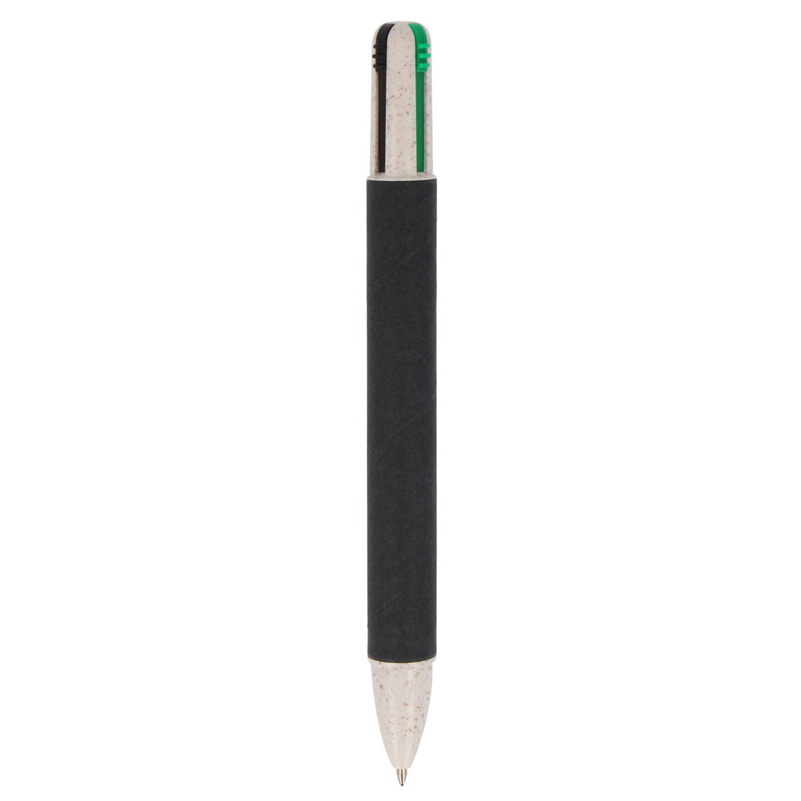 Wir präsentieren unseren Papier-Kugelschreiber mit vier Schreibfarben. Vielseitig und unterhaltsam – er vereint farbenfrohe Schreiboptionen in einem praktischen Werkzeug.