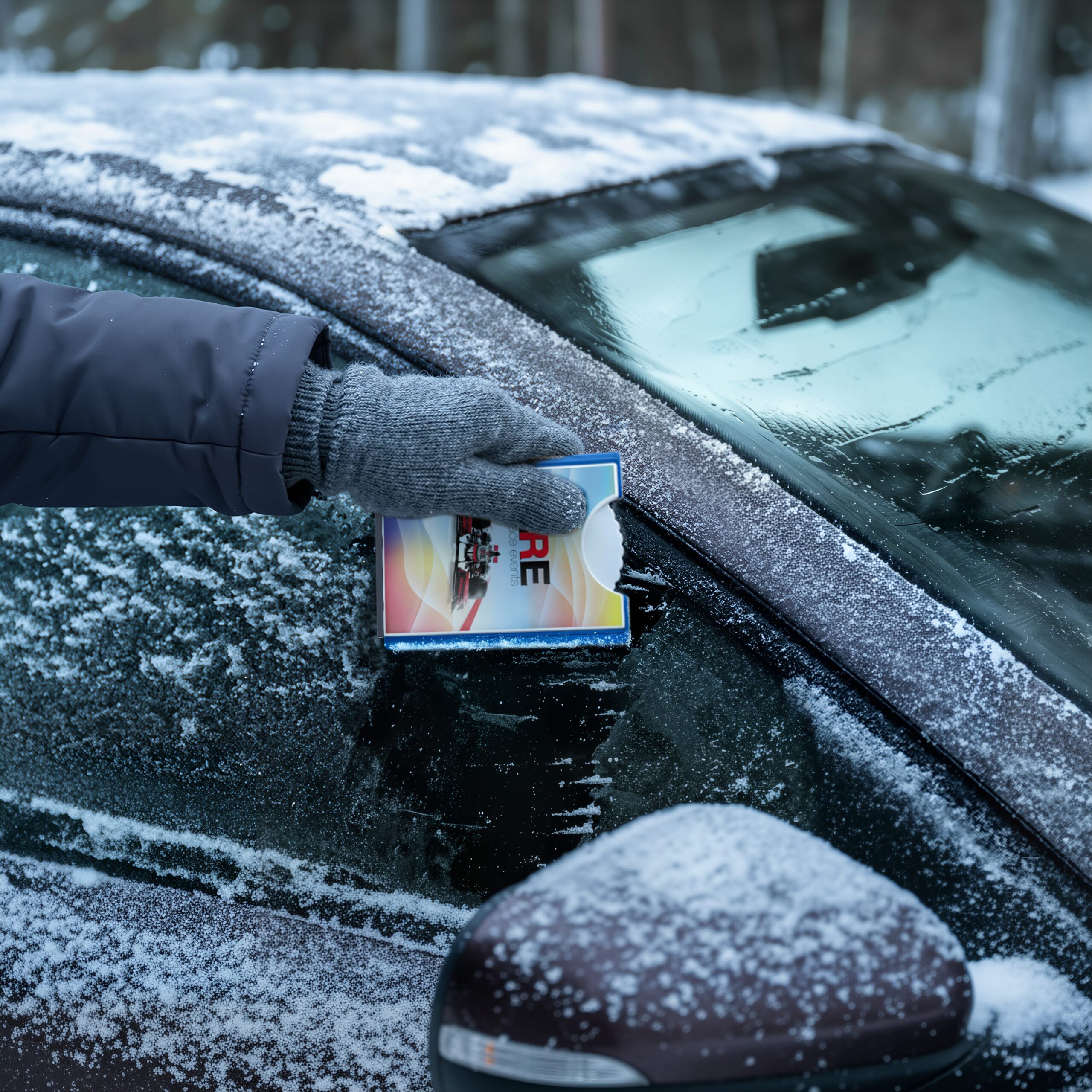 Toppoint Design: Parkscheibe und Eiskratzer. Die Parkscheibe entspricht den europäischen Gesetzen (außer Frankreich). Große Druckfläche auf der Rückseite des Eiskratzers.