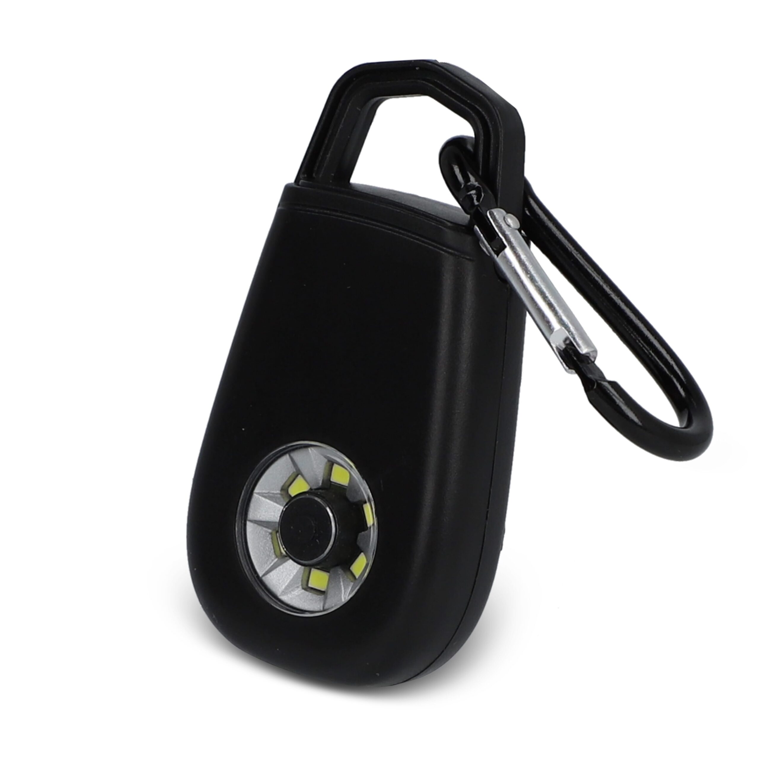 Persönlicher Sicherheitsalarm aus recyceltem ABS, der einen Ton von 100 dB für eine effektive Warnung abgibt. Inklusive Karabiner zur einfachen Befestigung und 3 LR44-Batterien. Verfügt über 6 SMD-Leuchten mit einer Helligkeit von 30 lm mit Hoch- und Blitzmodus für zusätzliche Sichtbarkeit.