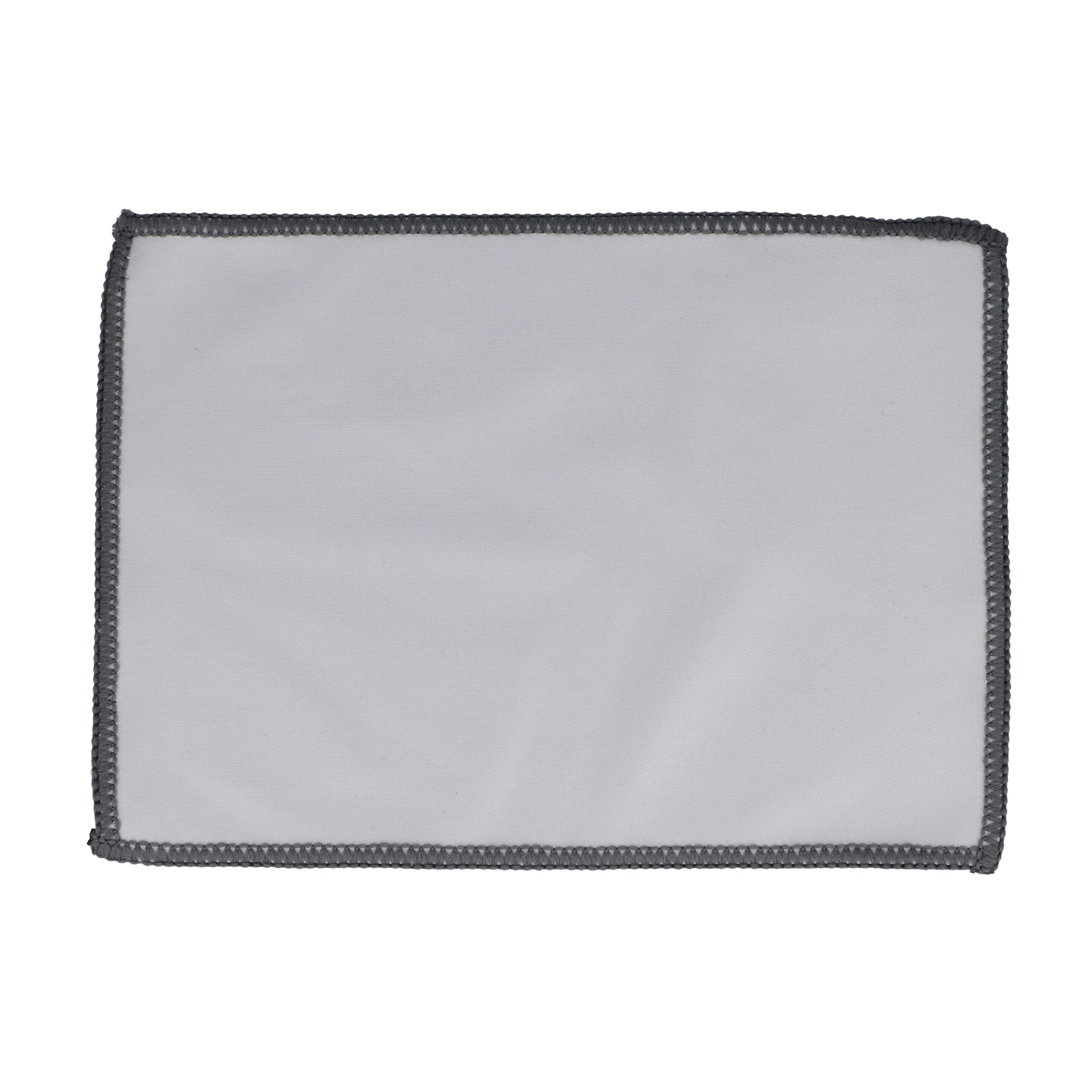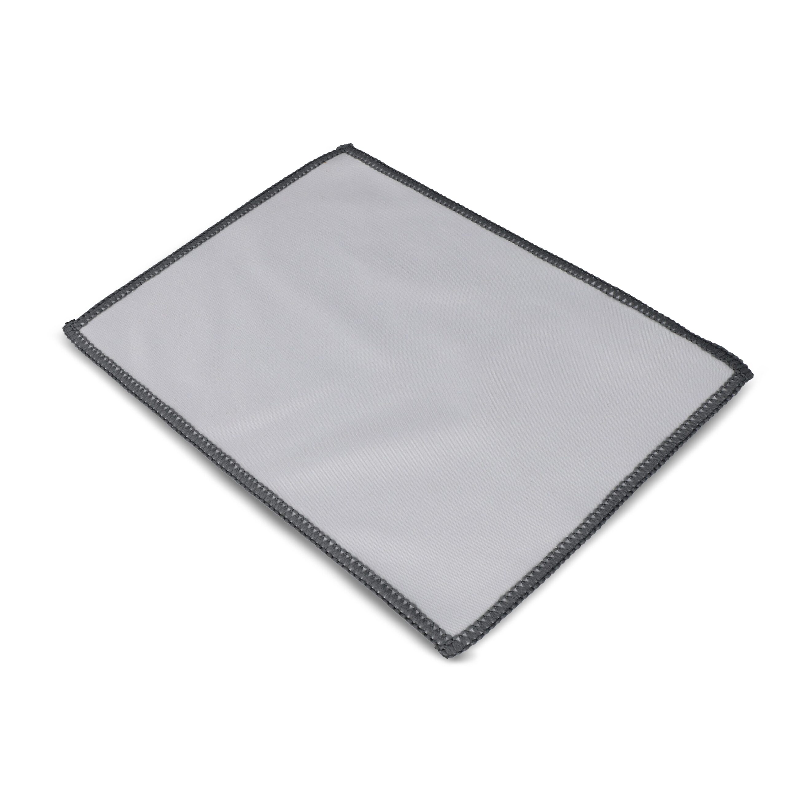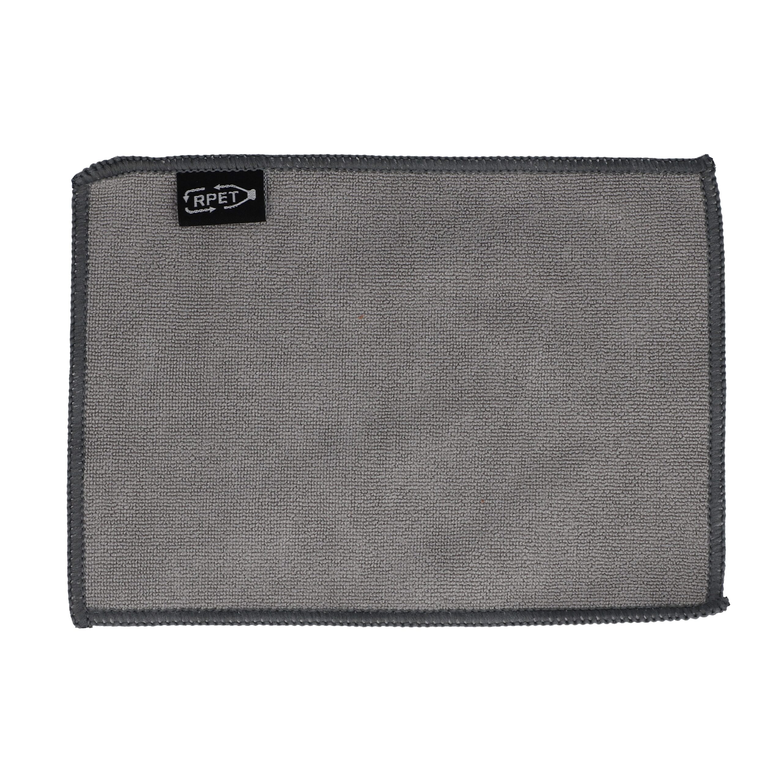 Ein Reinigungstuch für Bildschirme und Brillen aus 400g/m² 100% recyceltem PET. Eine Seite ist ein glattes, flach gewebtes Mikrofasertuch und die andere Seite ist ein Frotteetuch, um mehrere Reinigungsmöglichkeiten zu bieten. Bedrucken Sie dieses Produkt mit einem vollfarbigen Sublimationsdesign.
