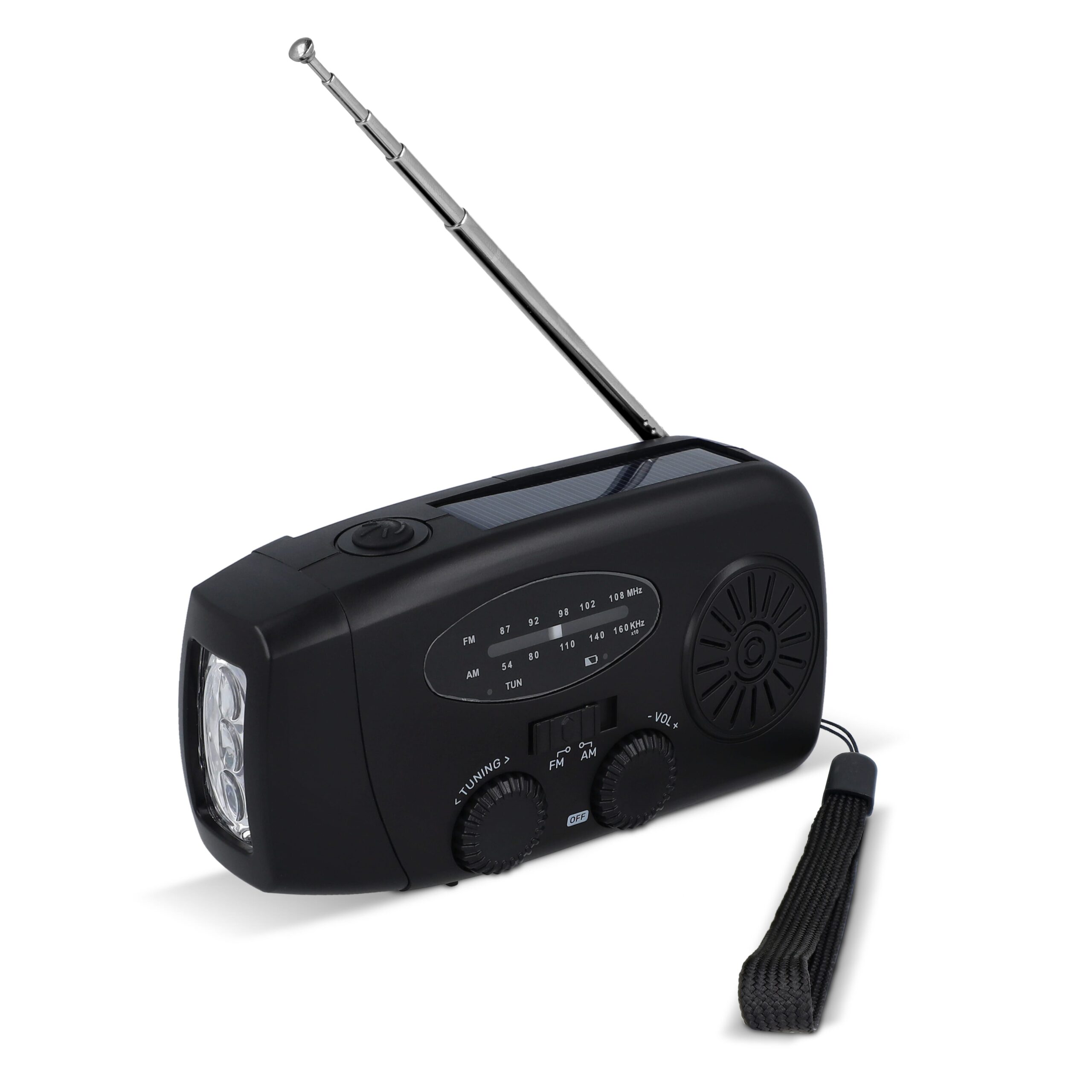 SafeSound Notfallradio ist ein kompaktes, tragbares All-in-One-Gerät: Radio, Taschenlampe und Powerbank. Es lädt sich über Solarenergie, Handkurbel oder das mitgelieferte USB-C-Kabel auf. Hören Sie AM- und FM-Sender, laden Sie Ihr Handy mit 1800 mAh Akku auf oder nutzen Sie die integrierte Taschenlampe. Mit 15 Stunden Batterielaufzeit ideal für Notfälle und Reisen.