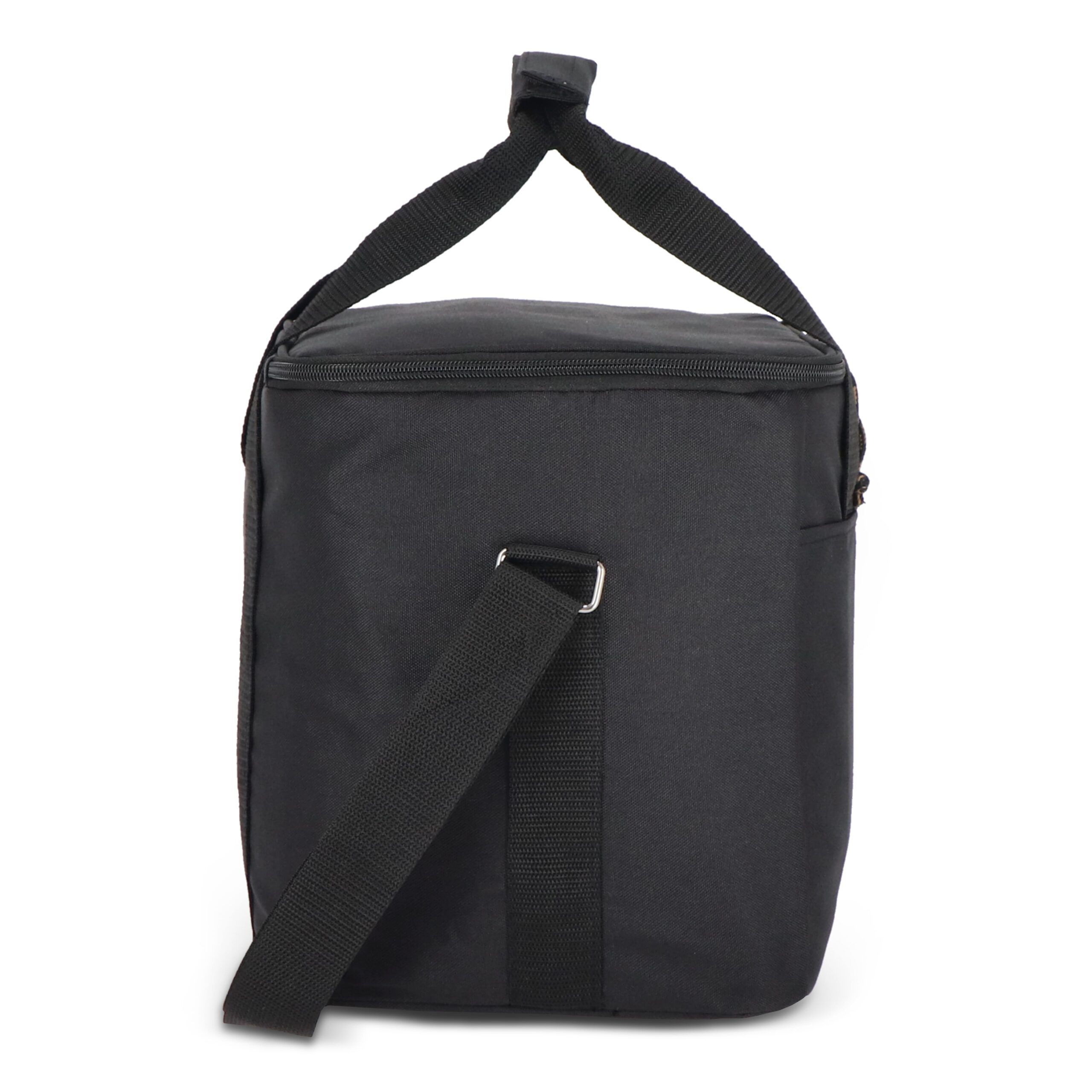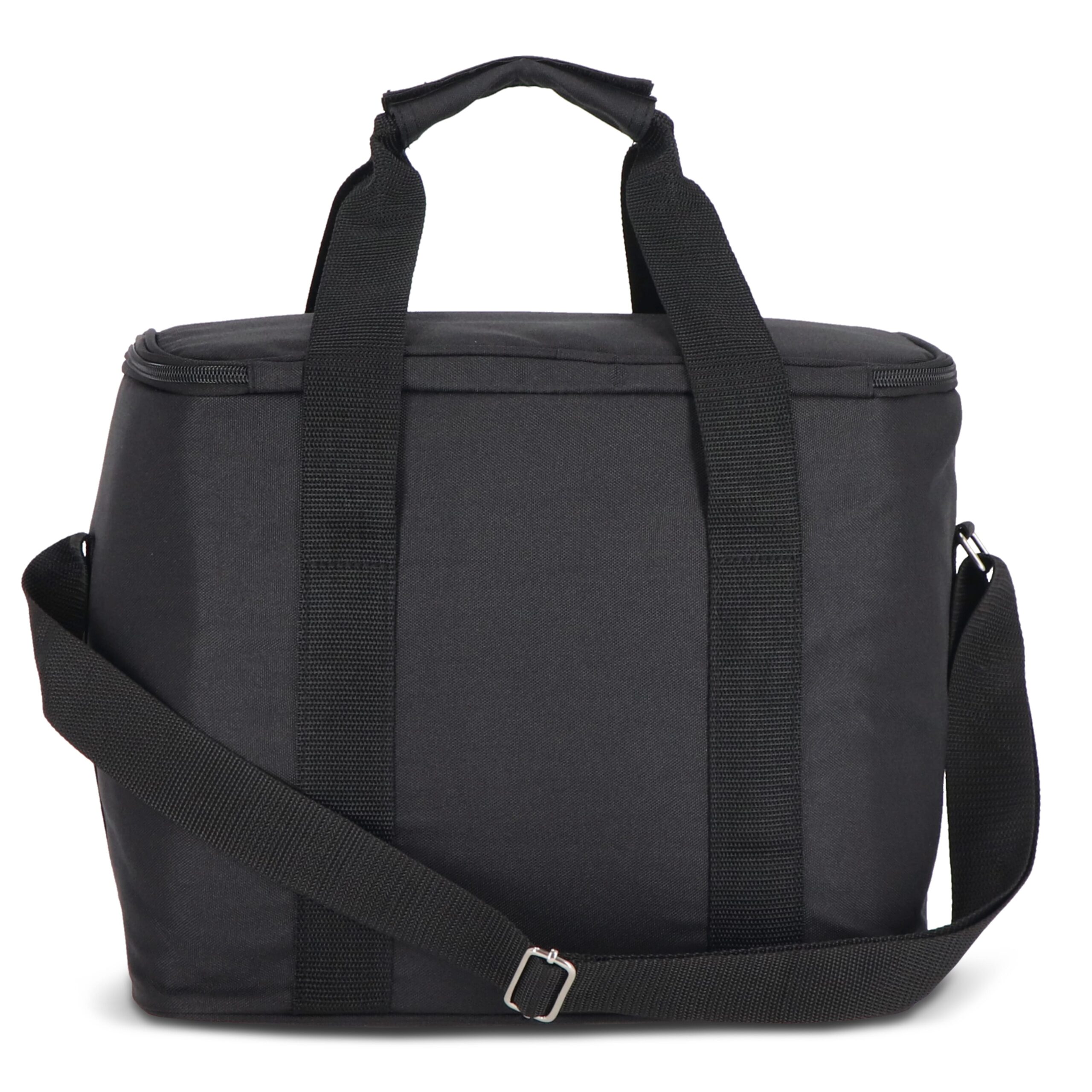Geräumige, stilvolle und sportliche Kühltasche aus grünem rPET-Material. Schöne Details in Beige und Schwarz. Praktisch mit einem Griff und einem verstellbaren Schultergurt.