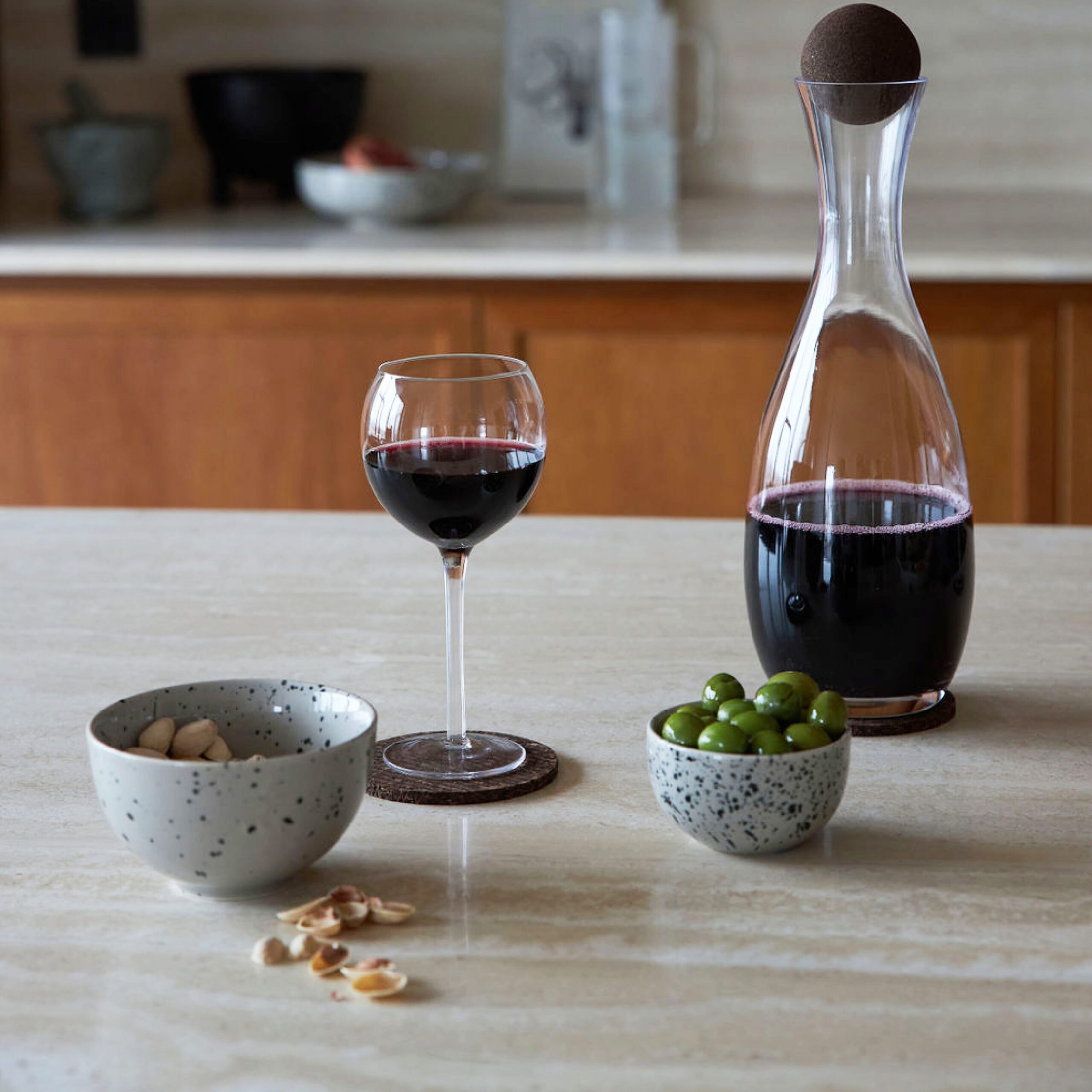 Eine mittelgroße Schale, ideal für Snacks oder Frühstücksflocken. Die Farbe ist ein Beige/Grau-Ton mit einem schönen Spritzmuster in Schwarz. Diese Schale ist nur auf der Außenseite gemustert, um Harmonie und Charakter zwischen den verschiedenen Teilen der Serie zu schaffen. Hergestellt aus Steingut. Verkauft im 2er-Pack.