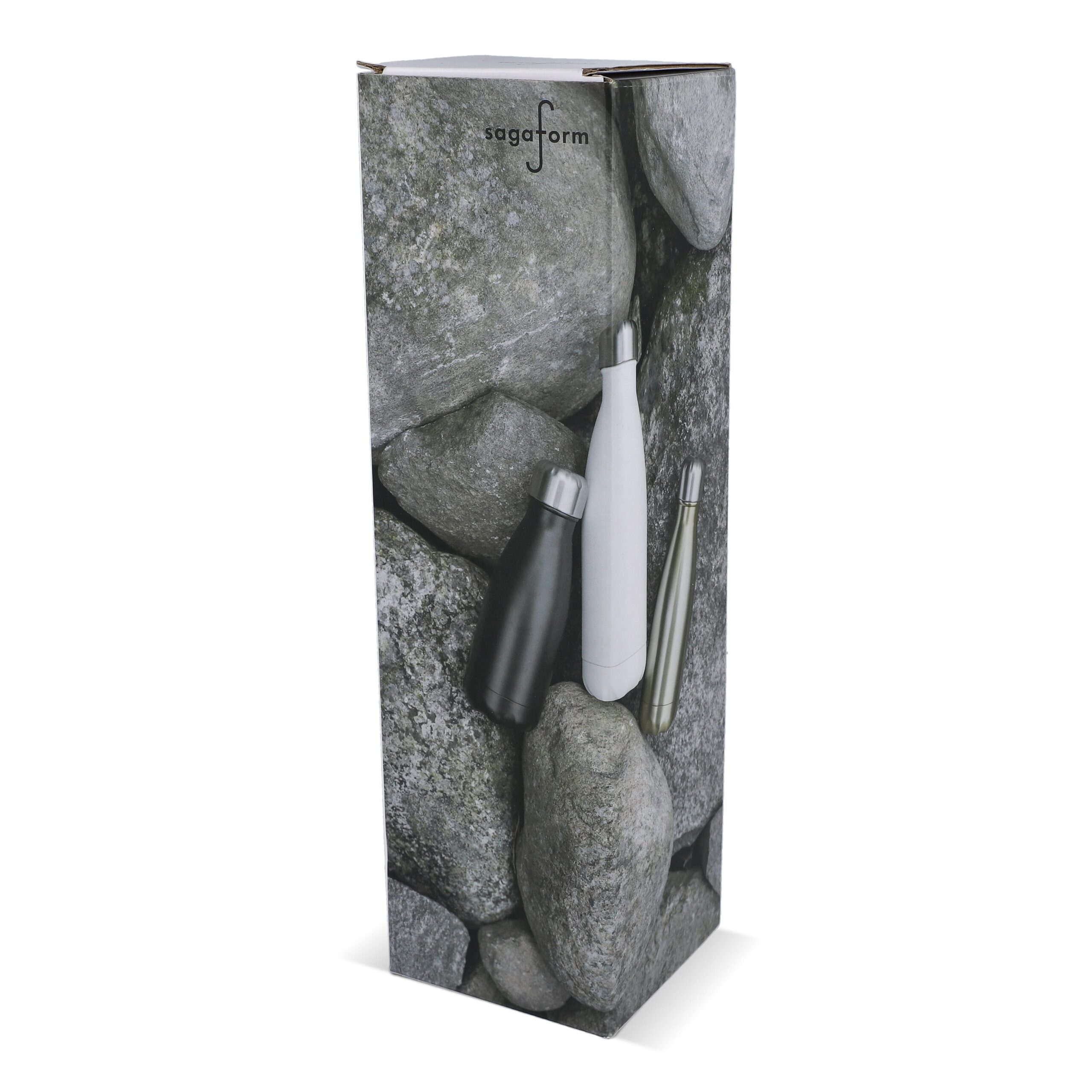 Die Sagaform Nils Stahlflasche in Chrom vereint Stil und Funktion. Aus recyceltem Stahl mit glänzender Oberfläche hält sie Getränke bis zu 24 Stunden kalt oder 12 Stunden heiß – ganz ohne Kondenswasser. Ideal für Lasergravur, per Hand zu spülen und in Geschenkbox verpackt.