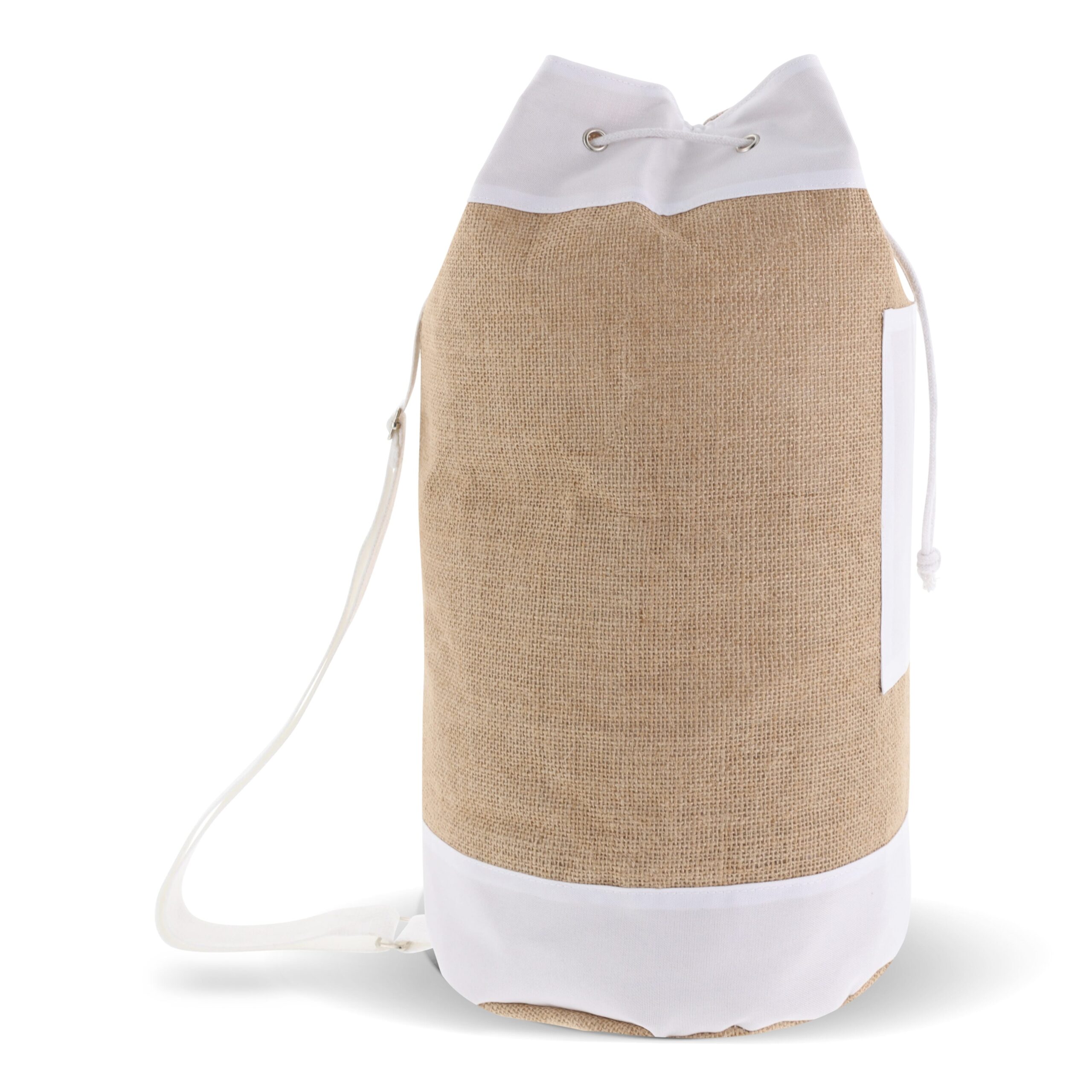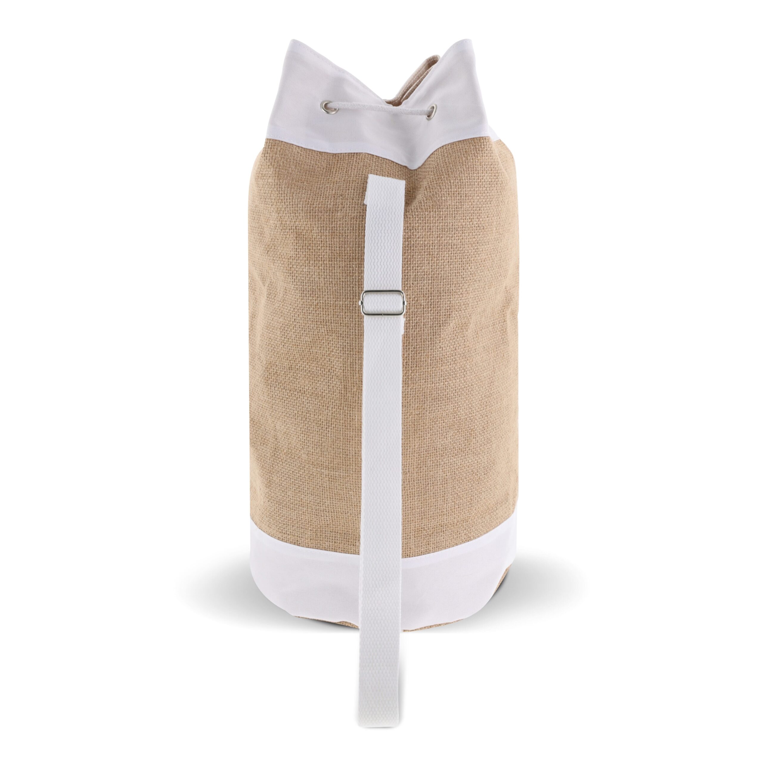Großer Seesack aus Jute und Baumwolle. Inkl. Schultergurt und Kordelzug.