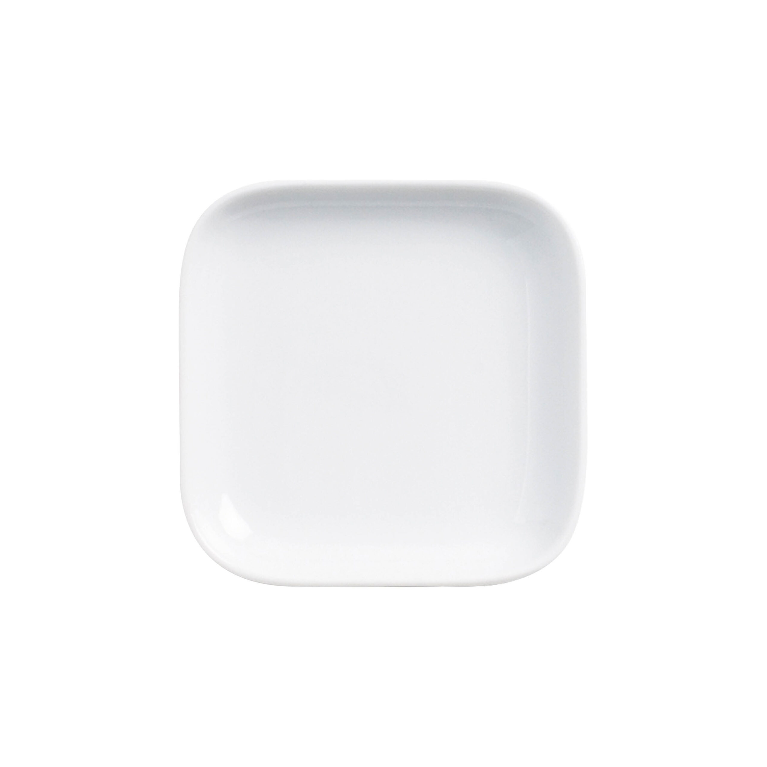 Der quadratische Porzellandeckel Caleo ergänzt das kleine Schälchen der Serie perfekt. Die flache Form mit dezent gerundeten Ecken greift die Gestaltung der gesamten Linie auf.