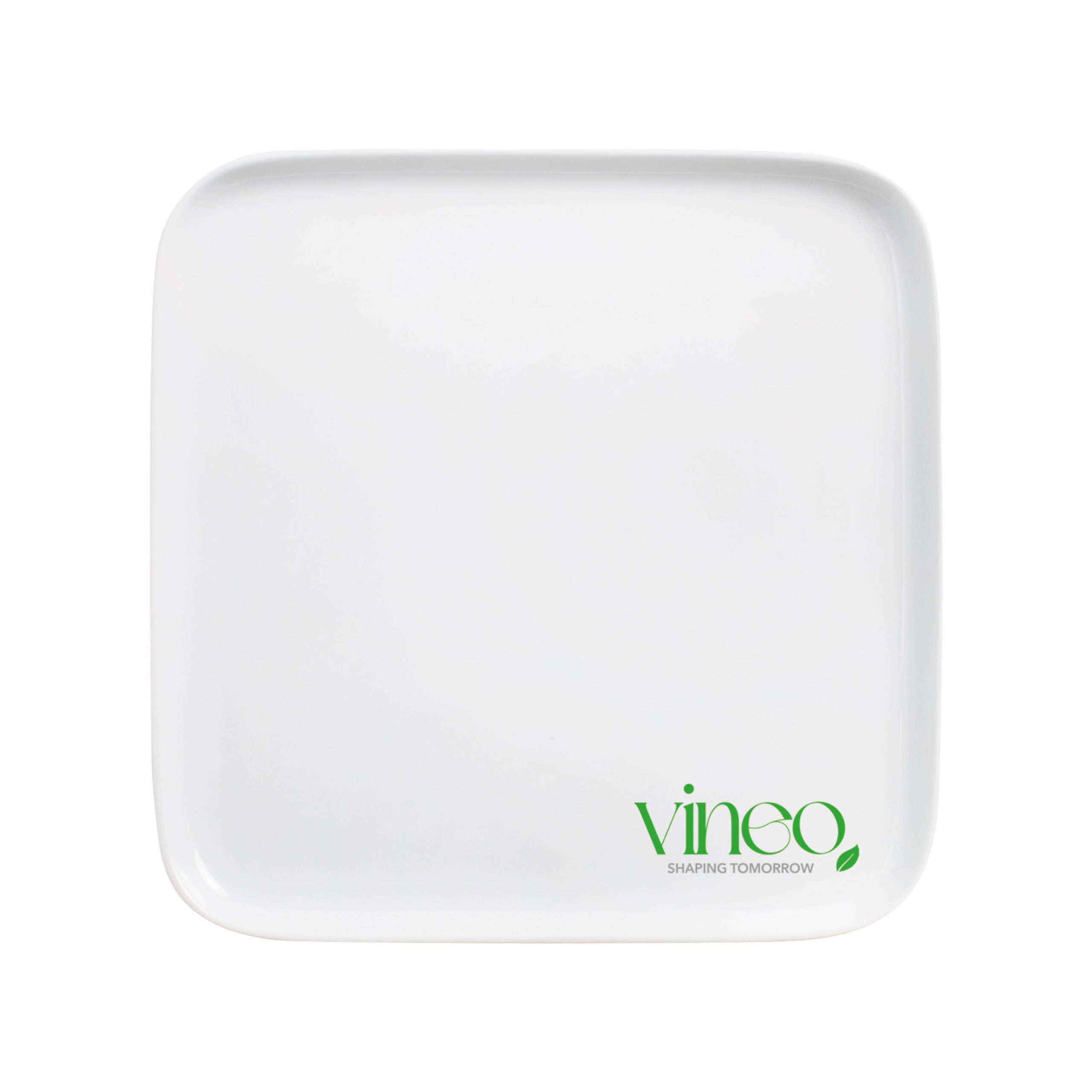 Das quadratische Porzellantablett Caleo setzt auf klare Linien und sanfte Rundungen, die zu einer harmonischen Form verschmelzen. Die hochglänzende Oberfläche unterstreicht den hochwertigen Charakter.