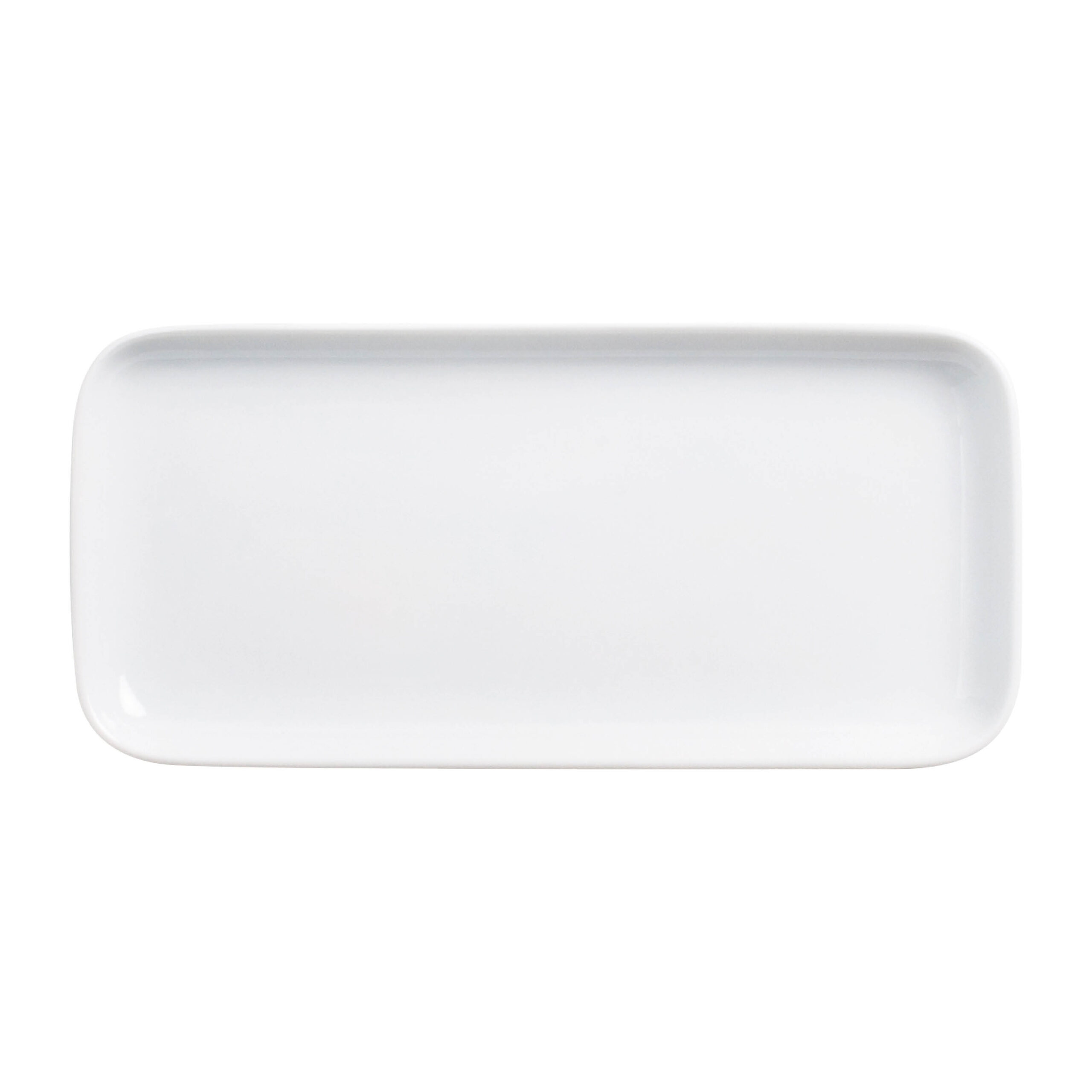 Das rechteckige Porzellantablett Caleo präsentiert Speisen und Kleinigkeiten auf elegante Weise. Die klare Form mit weich gerundeten Ecken sorgt für eine moderne Optik mit dezenter Präsenz.