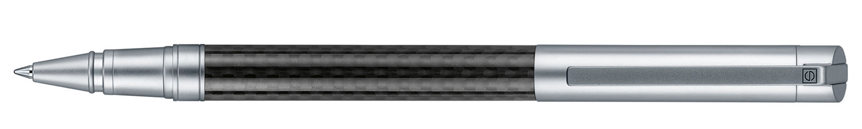 Der Carbon Line Rollerball kombiniert Metall mit leichtem Carbon, das durch seine Stabilität und die markante Struktur überzeugt. Matt verchromte Metallteile ergänzen den Schaft und betonen den Hightech-Charakter des Designs.