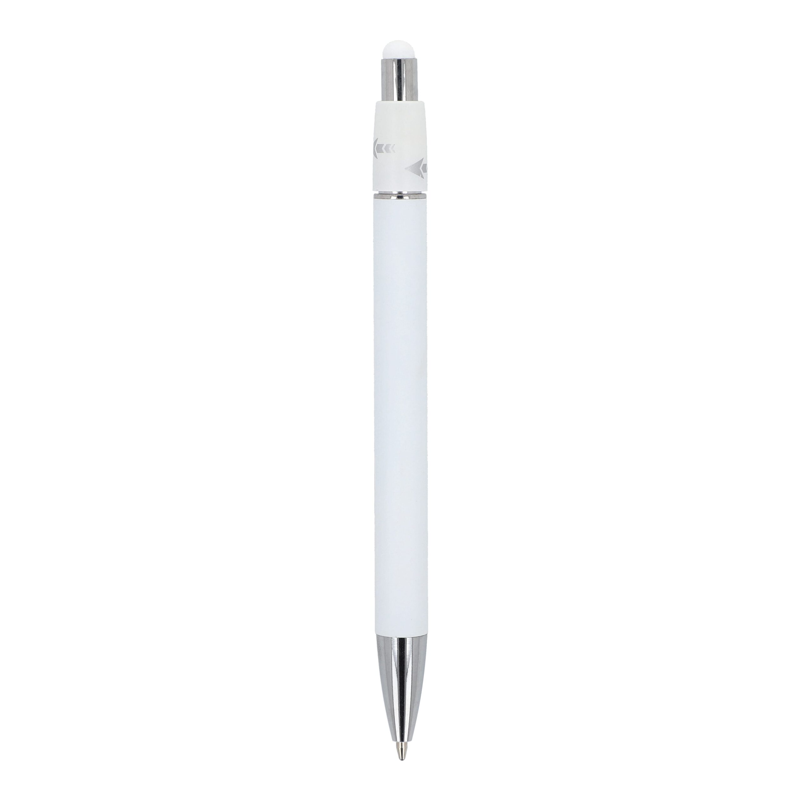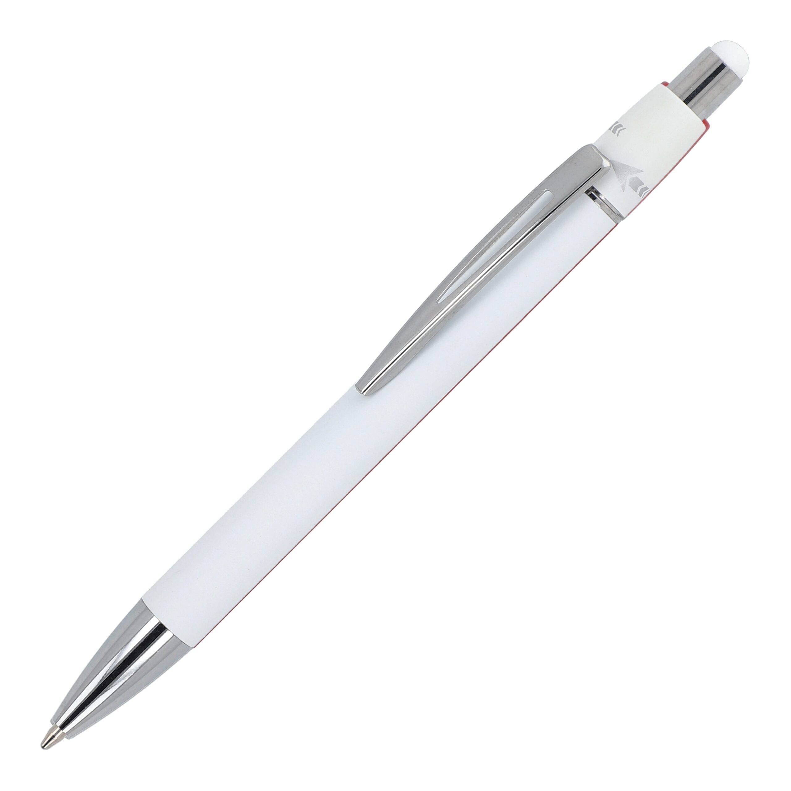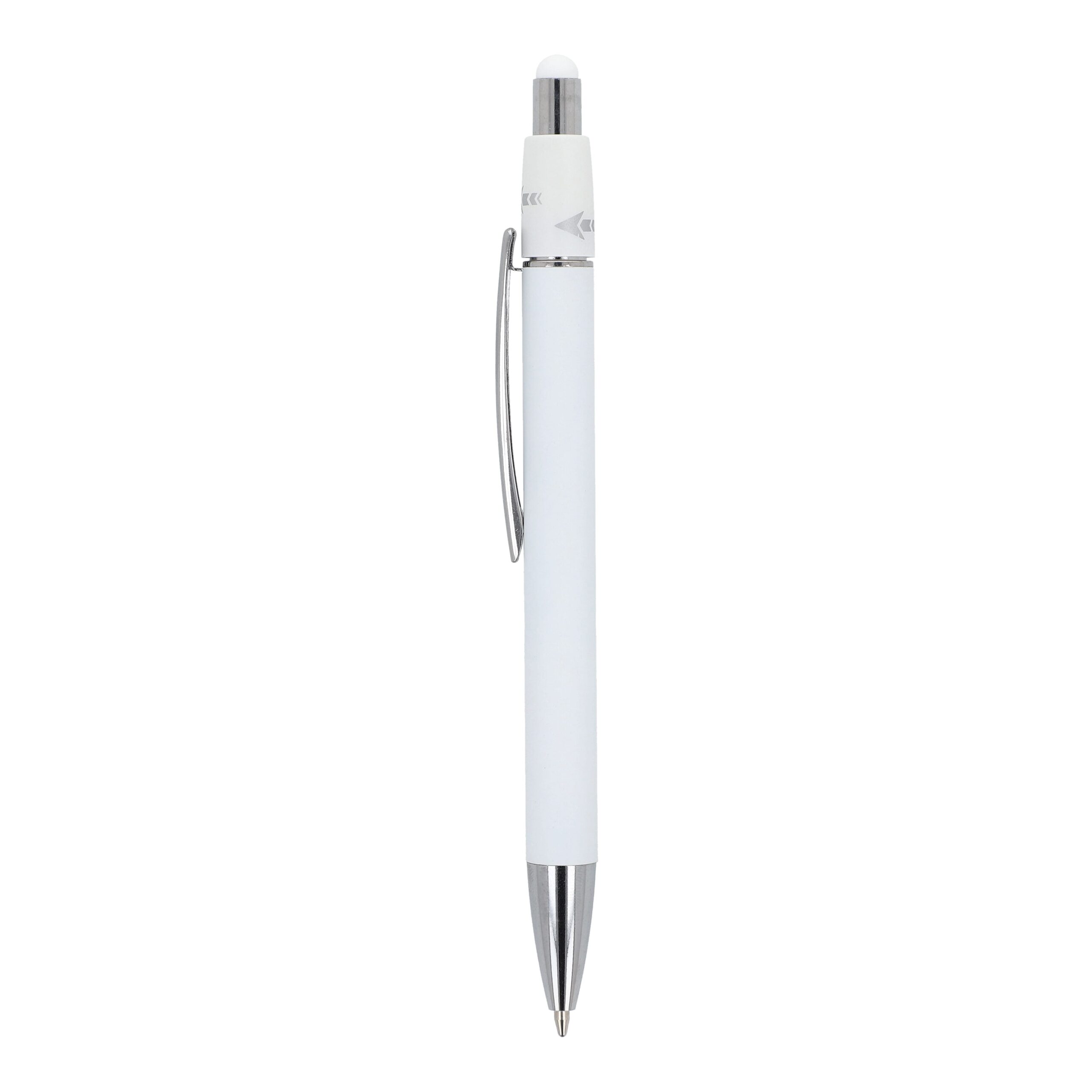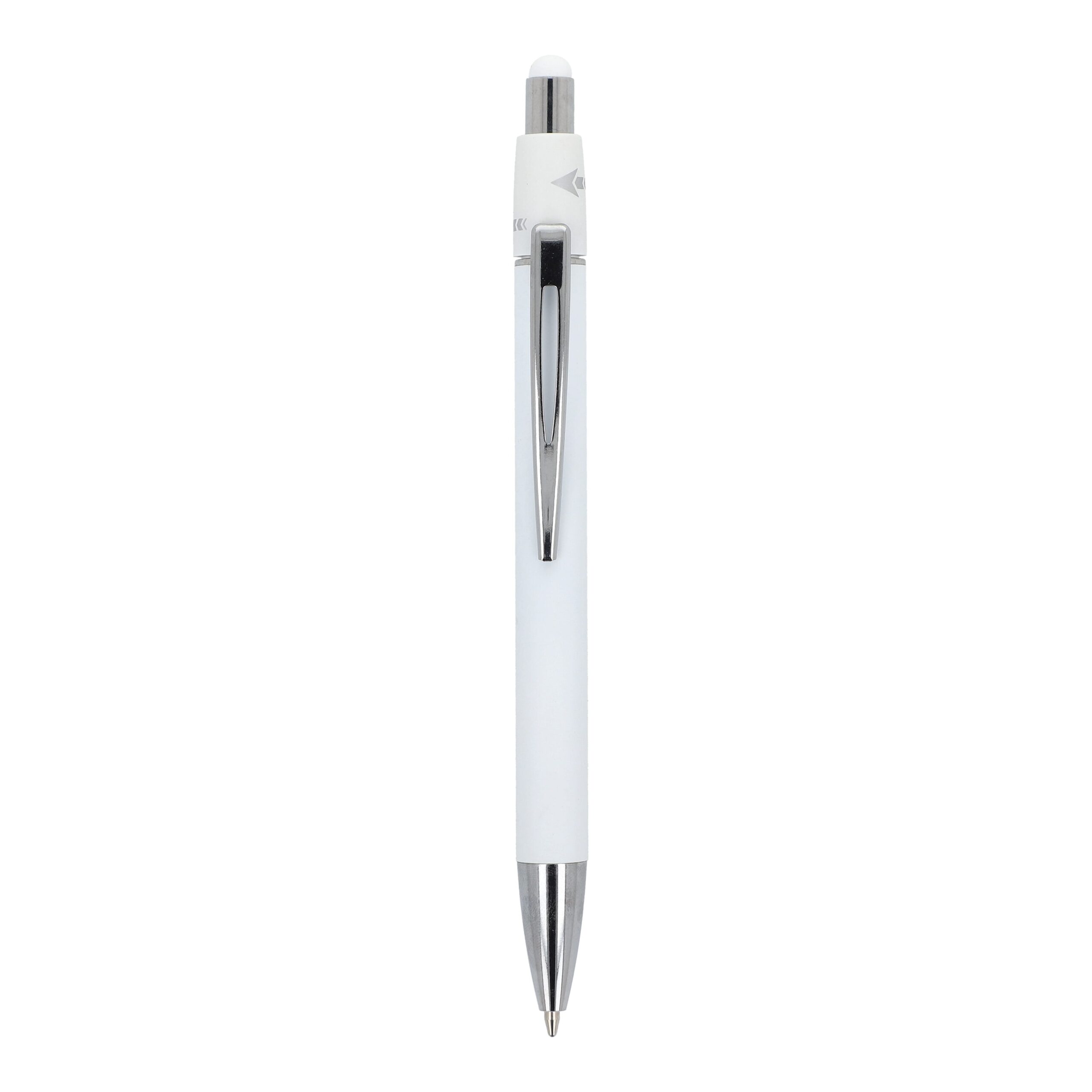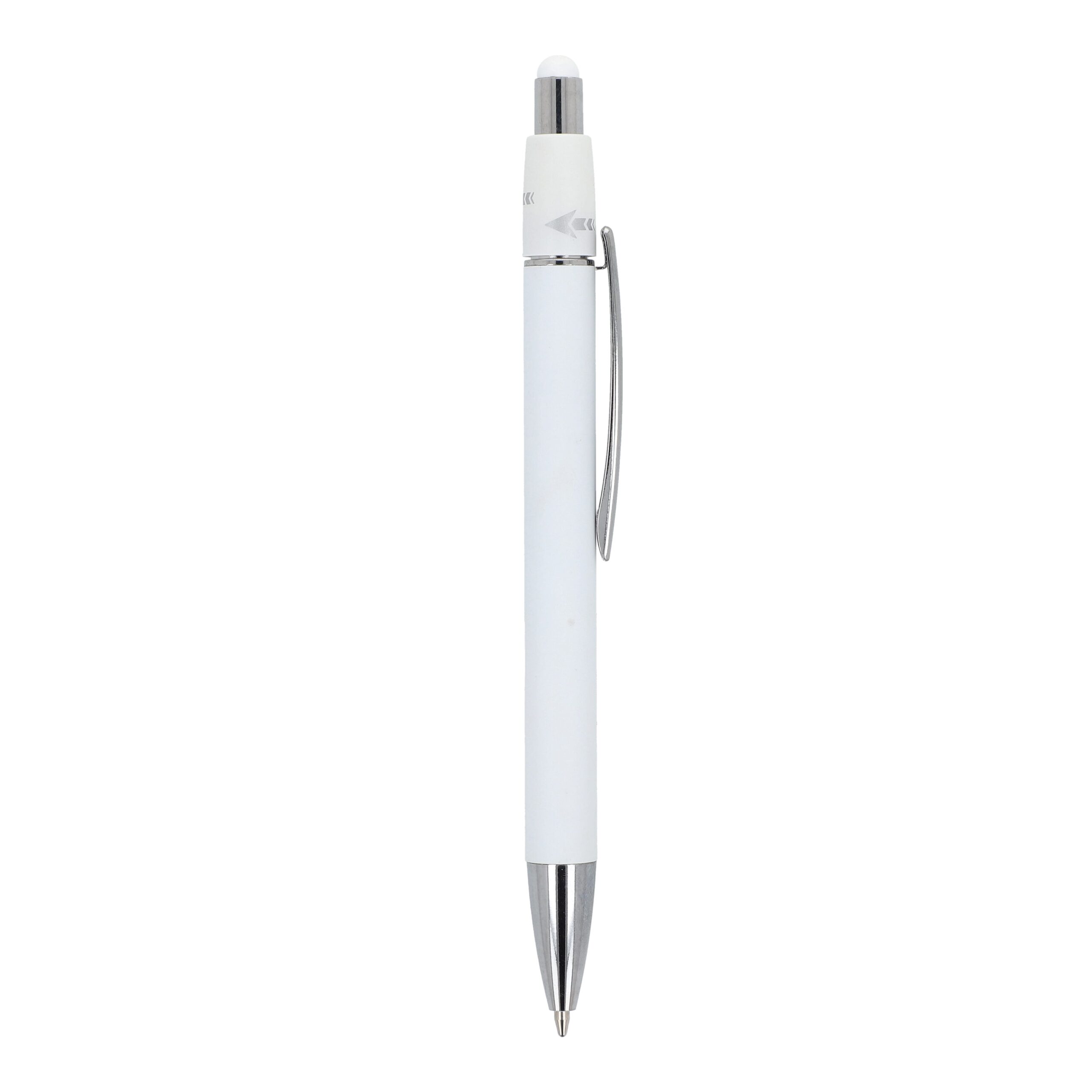 Aluminium-Spinner-Kugelschreiber mit Metallclip und blau schreibender Jumbo-Mine.
