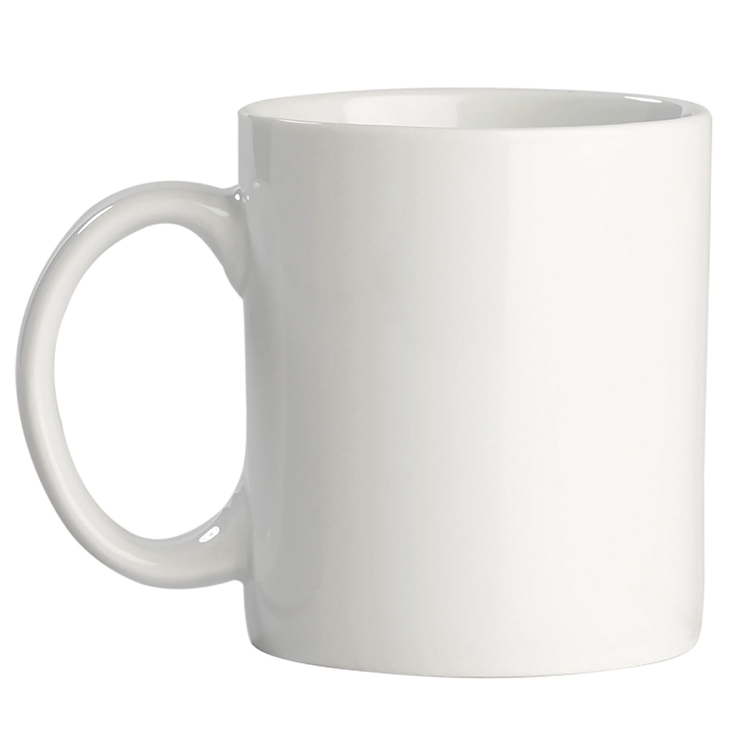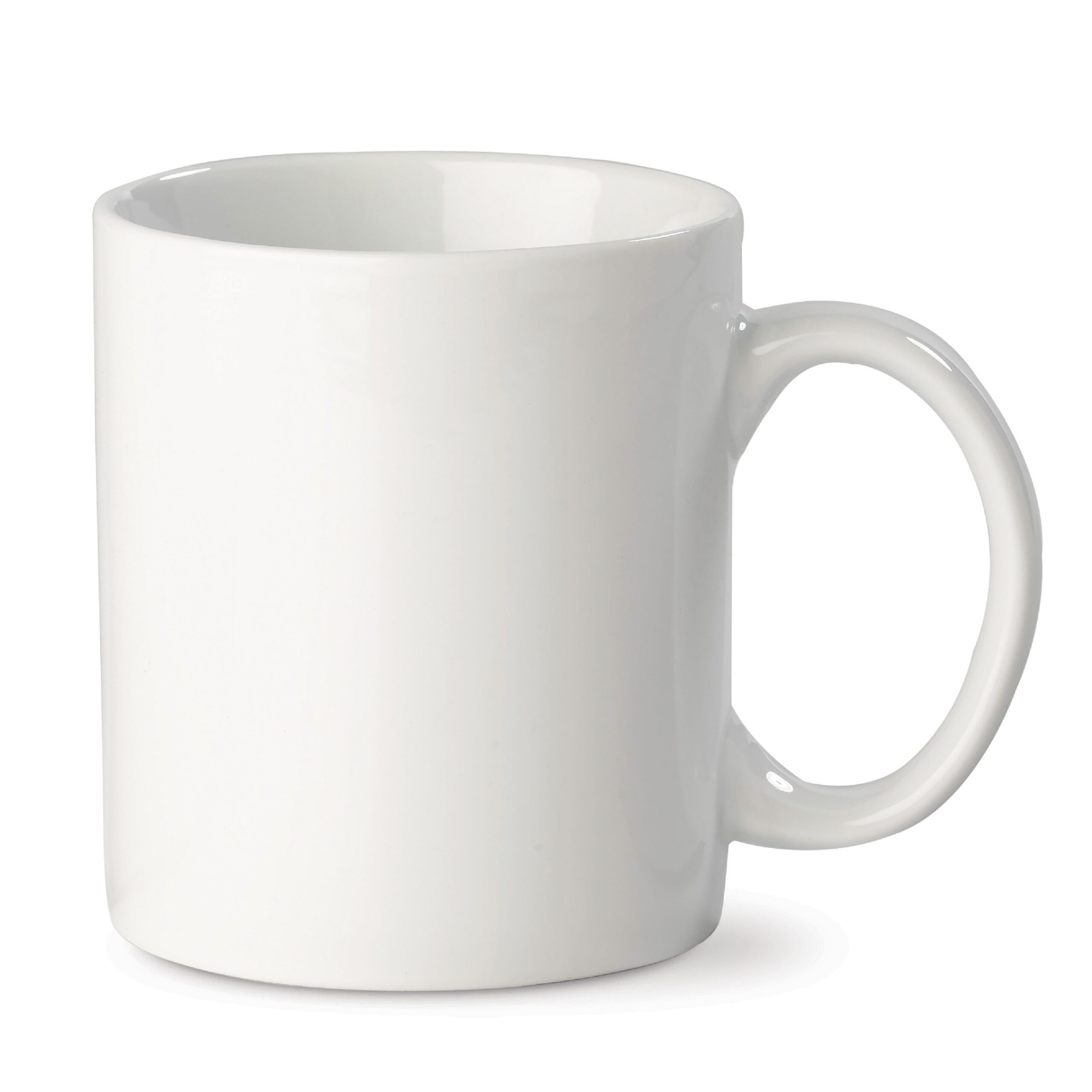 Gerader Porzellanbecher mit einer großen Druckfläche. Egal ob Rundumdruck oder ein Druck auf beiden Seiten, der Preis bleibt gleich.