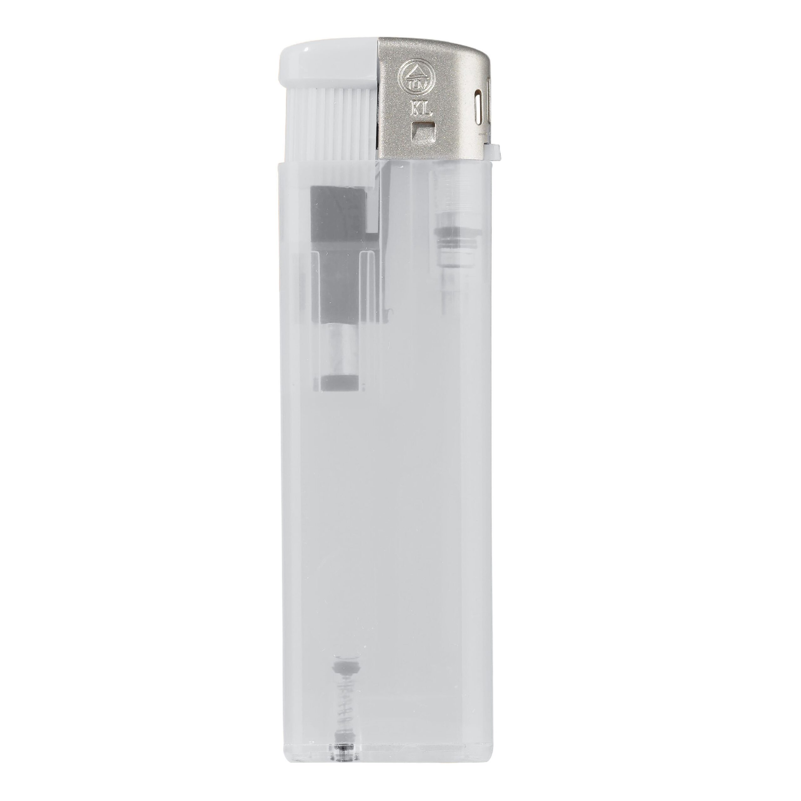 Elektronisches, nachfüllbares, transparentes Feuerzeug. Kindersicherung.