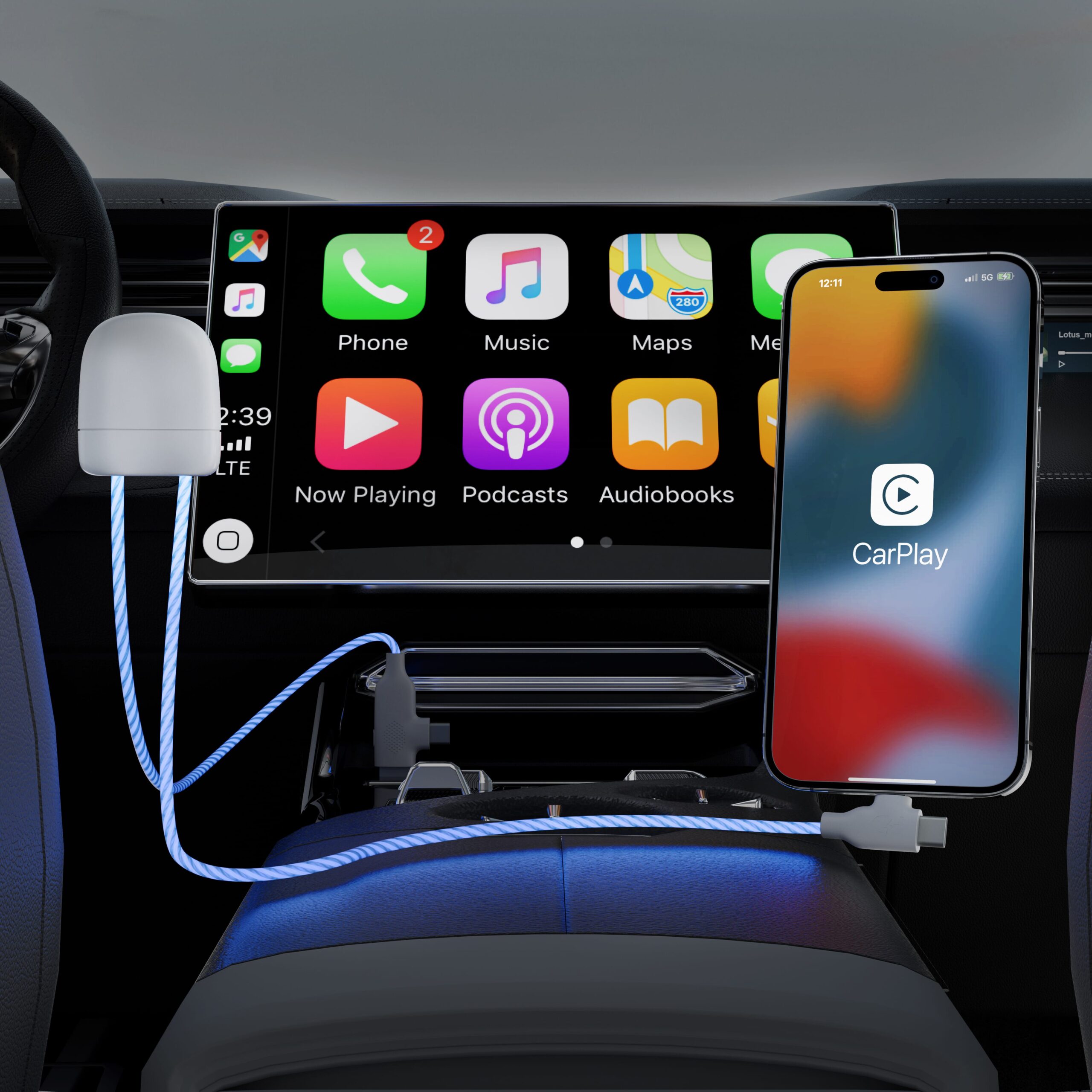 Die Xoopar Light up Ladekabel ist 2x 50cm lang, perfekt für nahtloses Laden und CarPlay-Funktionalität. Dualer Ein-/Ausgang, bis zu 27W Schnellladen. LED-Geschwindigkeit zeigt die Ladezeit an. Aus recyceltem Kunststoff.